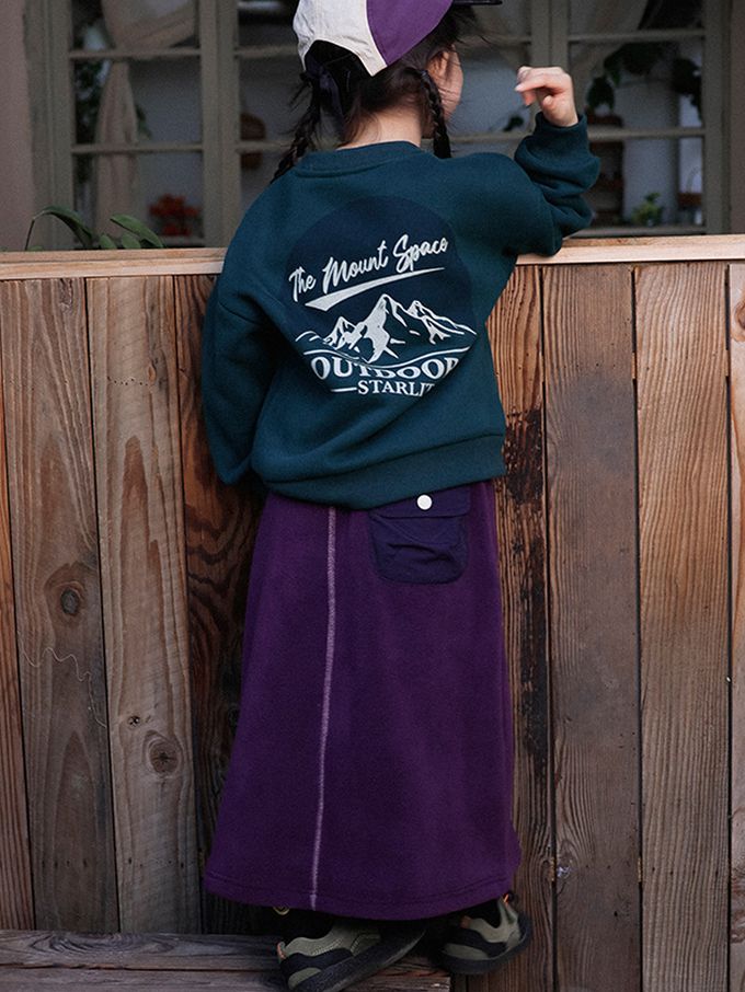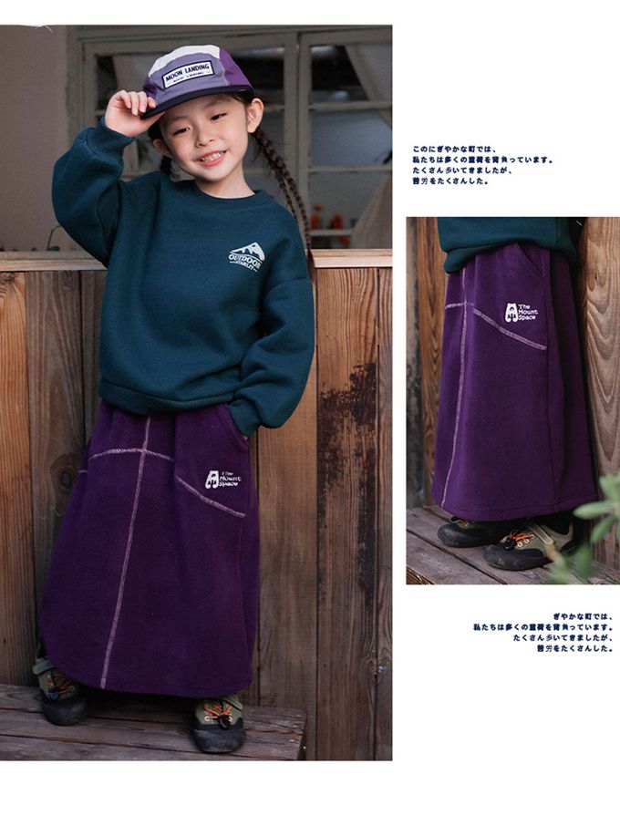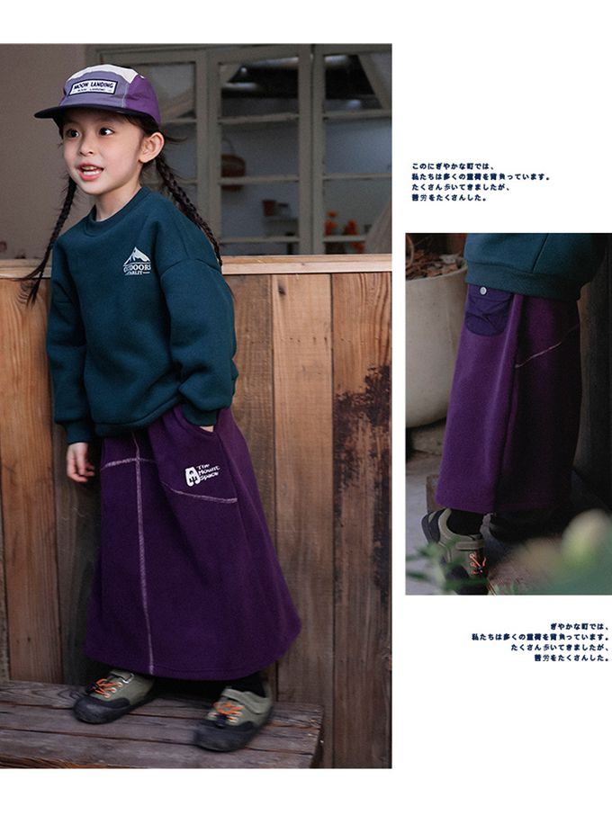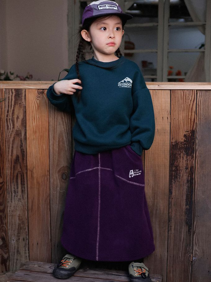 保暖搖粒絨撞色車線長裙-紫色