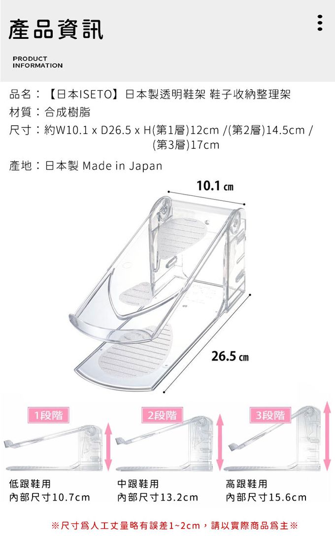 詳細尺寸:約W10.1×D26.5xH(第1層)12cm/(第2層)14.5cm /(第3層)17cm