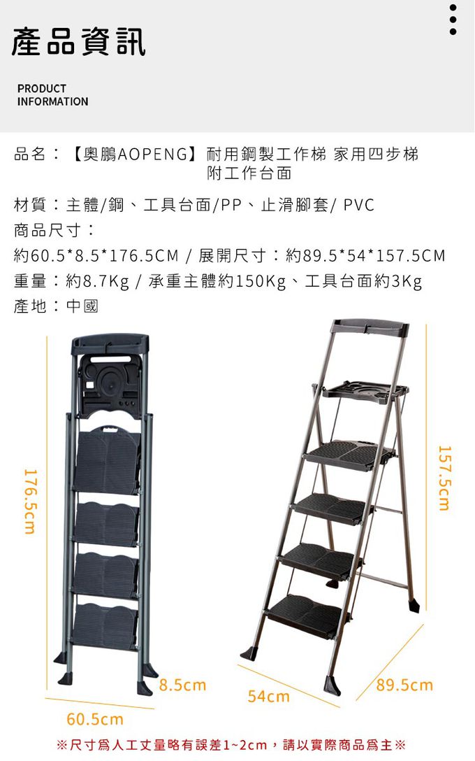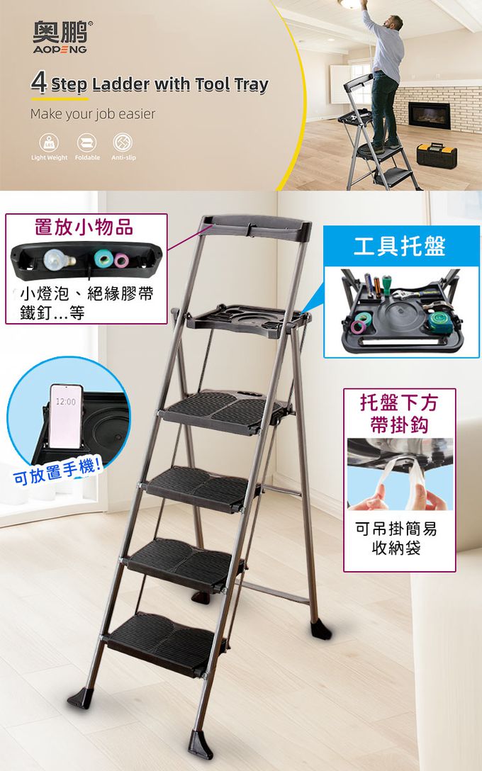 品名:耐用鋼製工作梯 家用四步梯 附工作台面