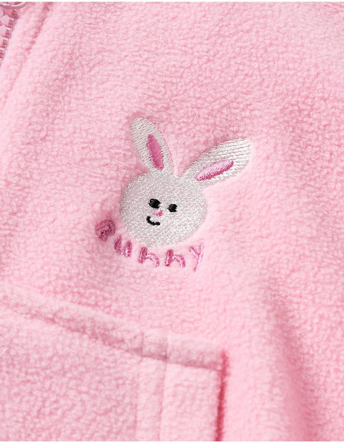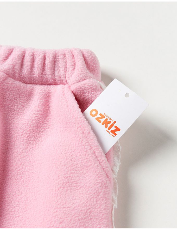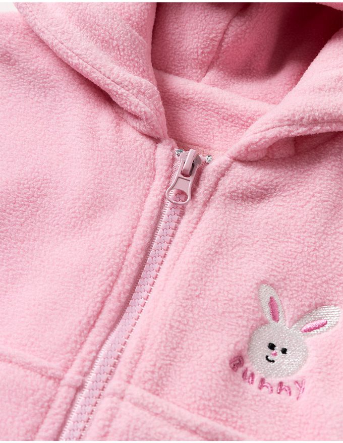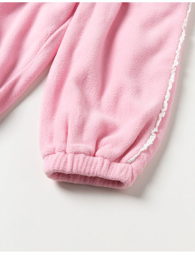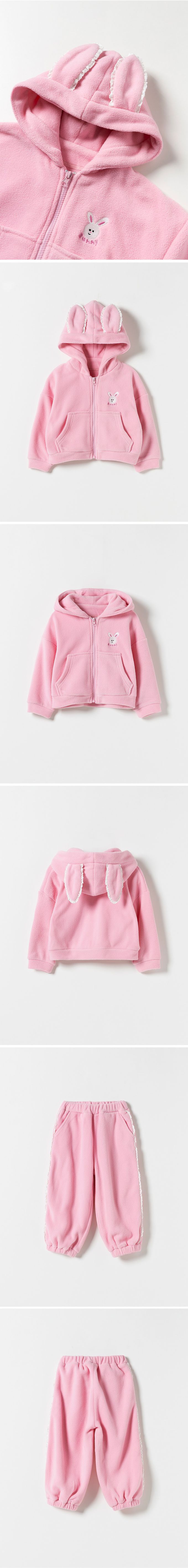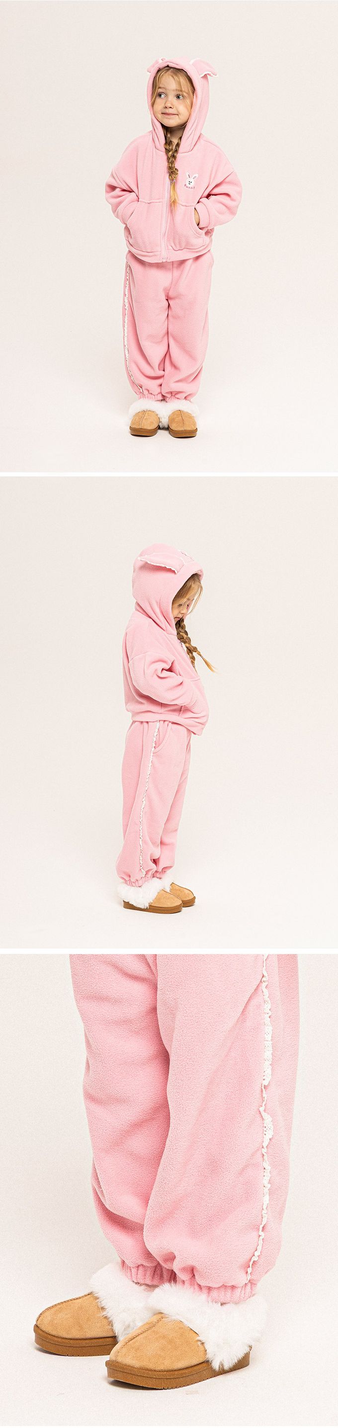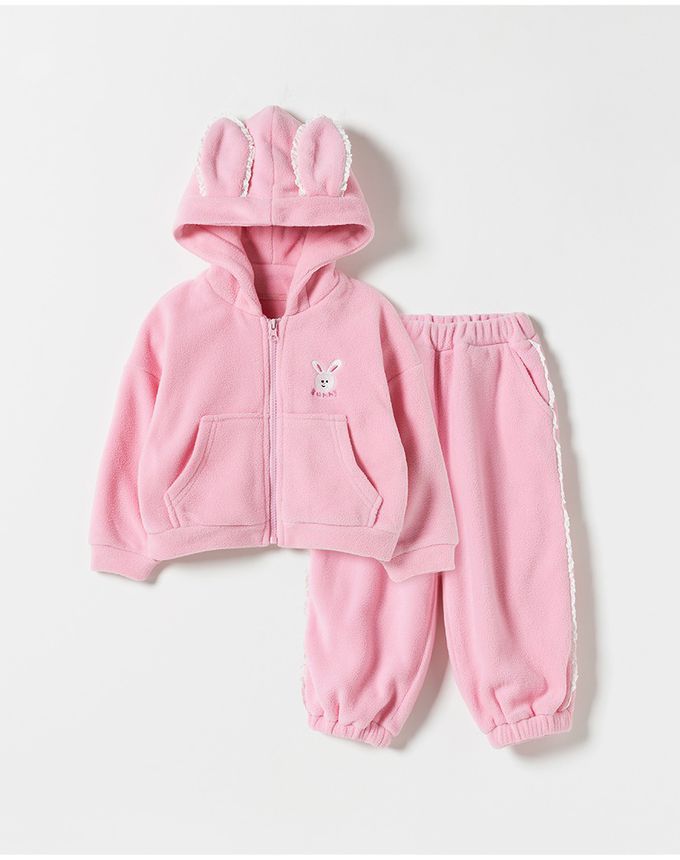 韓國 OZKIZ - 可愛兔兔搖粒絨連套外套X休閒褲套裝-粉