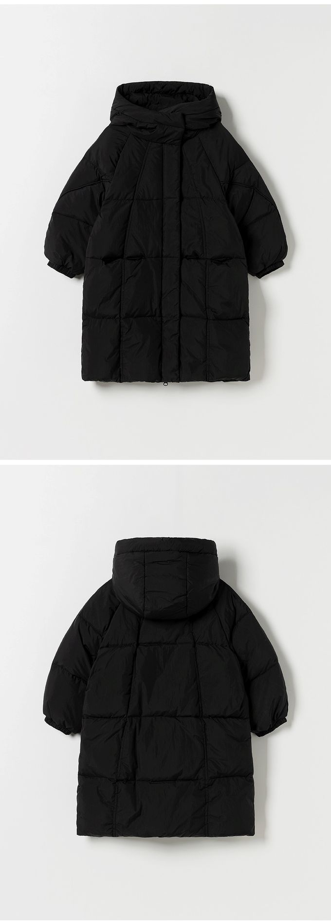 韓國 OZKIZ - 棉花糖蓬鬆連帽長版羽絨外套-黑