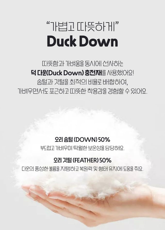 Duck Down 提供溫暖與輕盈感的鴨絨填充材質