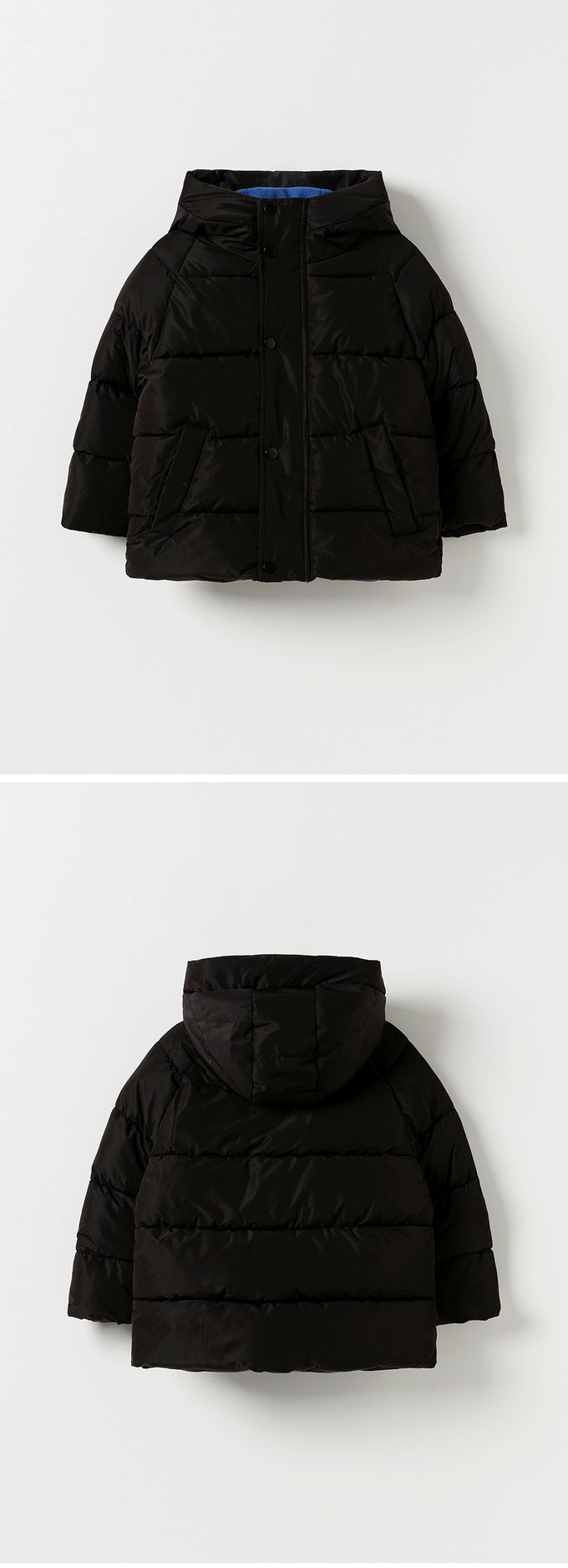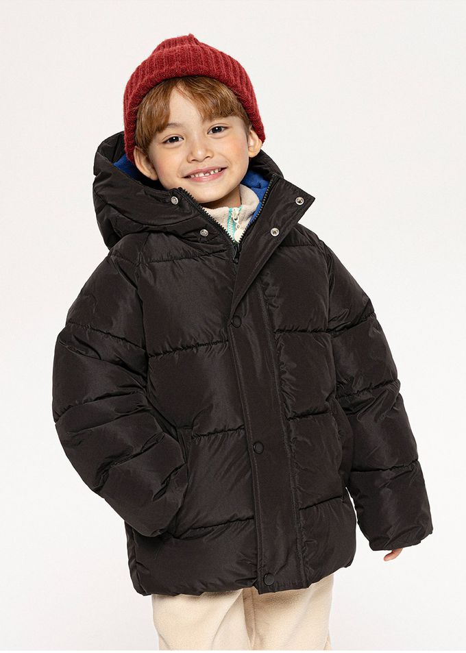 韓國 OZKIZ - 保暖防風搖粒絨填充連帽外套-黑