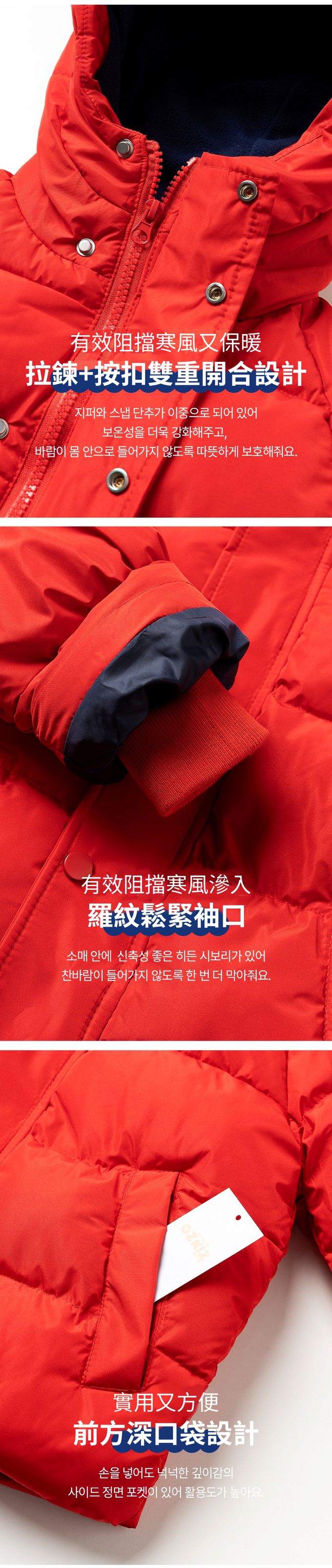 • 抓絨內裡,雙向拉鍊與按扣設計,阻擋寒風