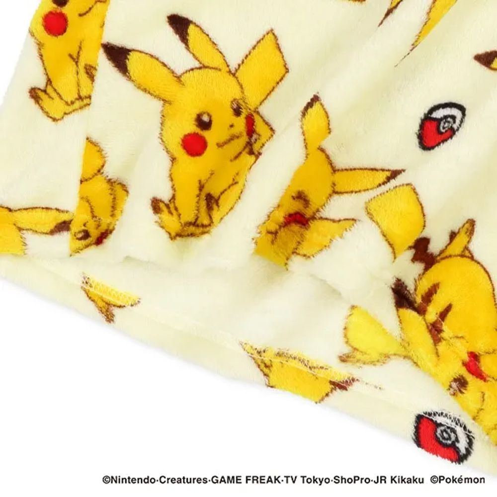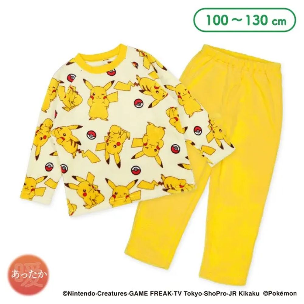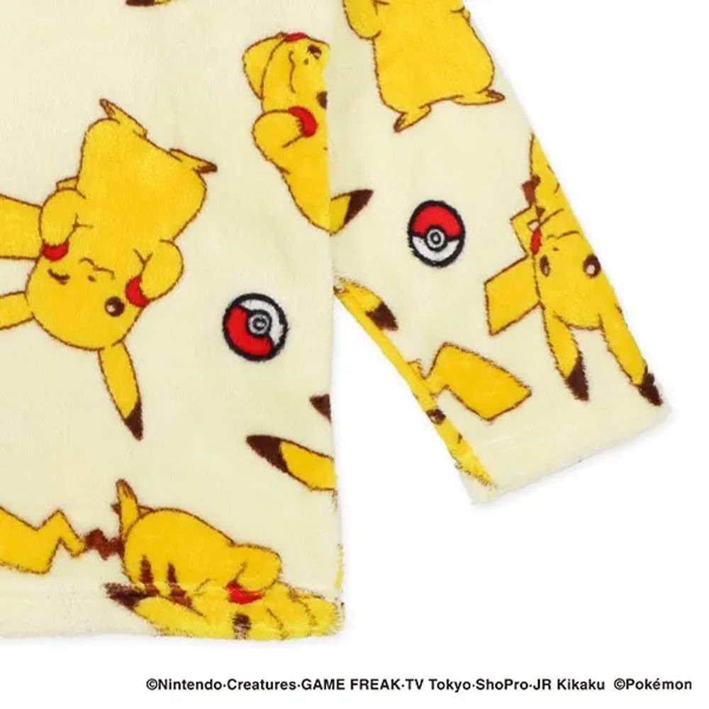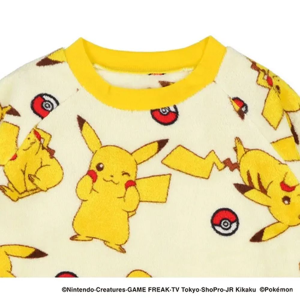 日本西松屋 - 聯名款 絨毛保暖長袖家居服/睡衣-卡通人物寶可夢-滿版印花-黃