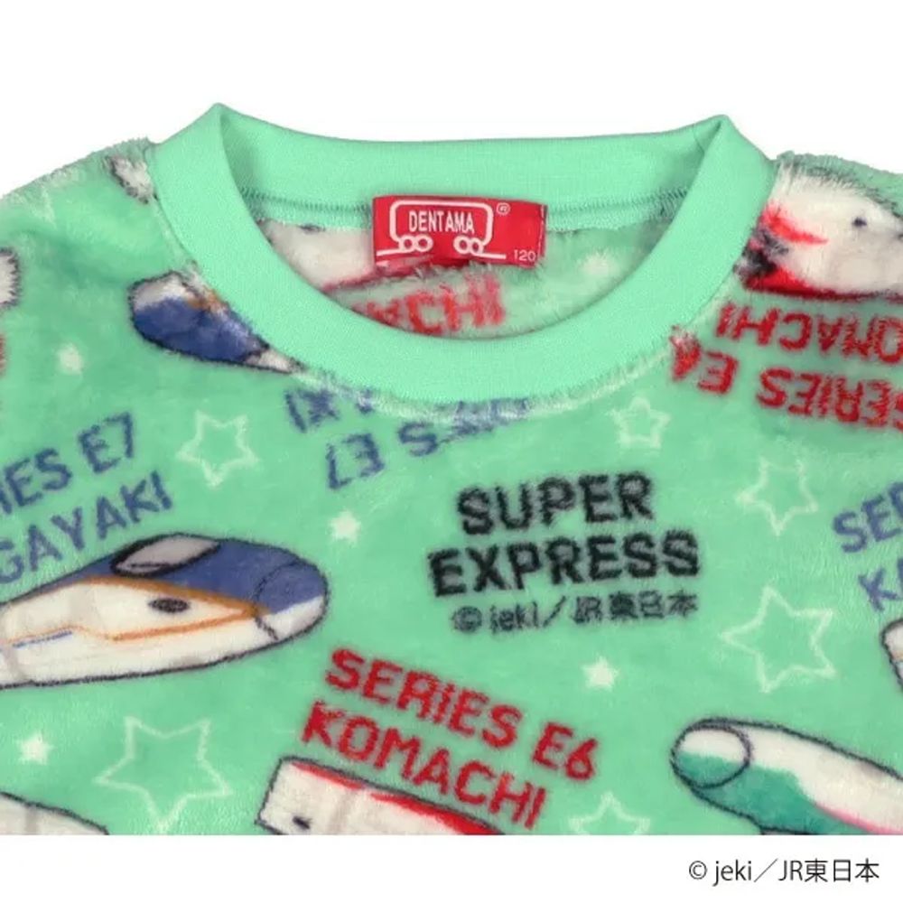 日本西松屋 - 聯名款 絨毛保暖長袖家居服/睡衣-新幹線-綠