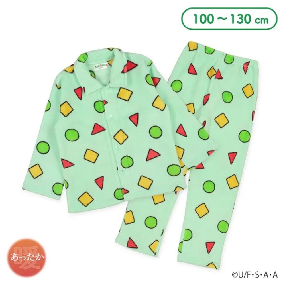 日本西松屋 - 聯名款 絨毛保暖長袖家居服/睡衣-卡通人物蠟筆小新-綠