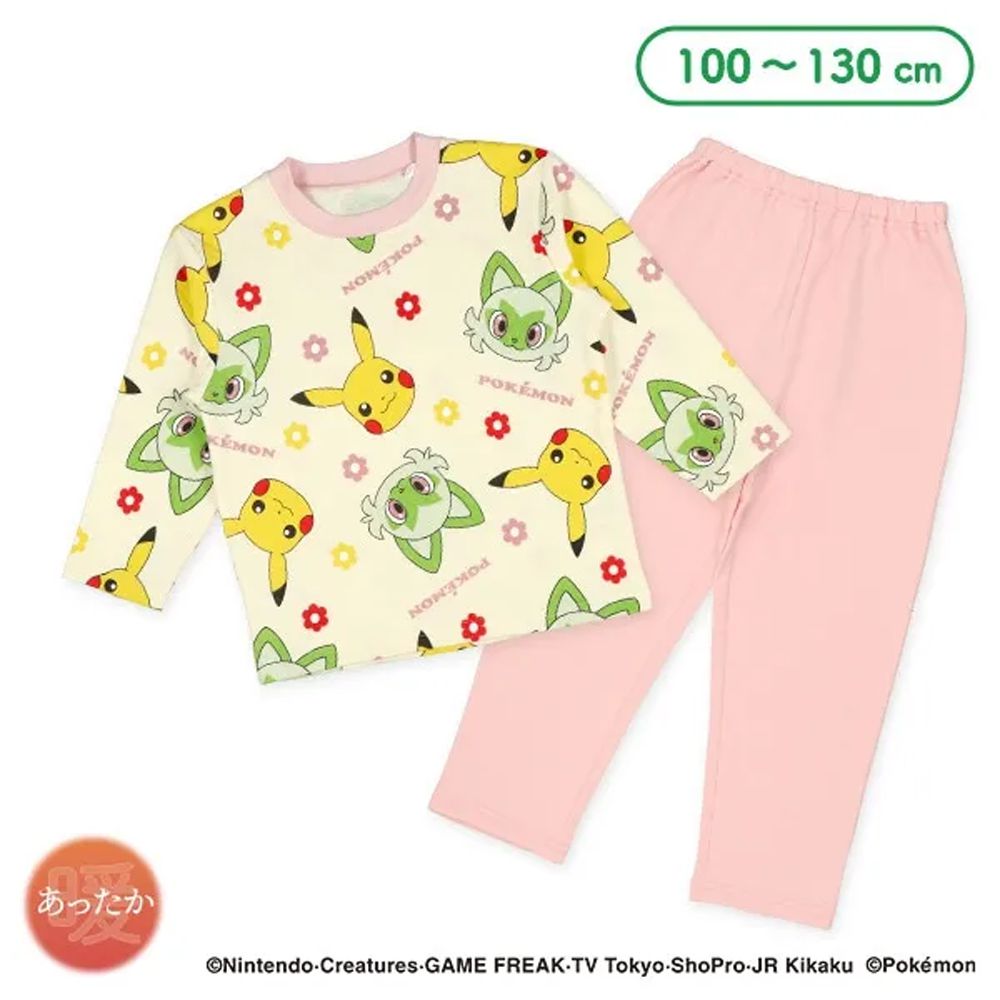 日本西松屋 - 聯名款 絎縫鋪棉保暖長袖家居服/睡衣-卡通人物寶可夢-粉紅