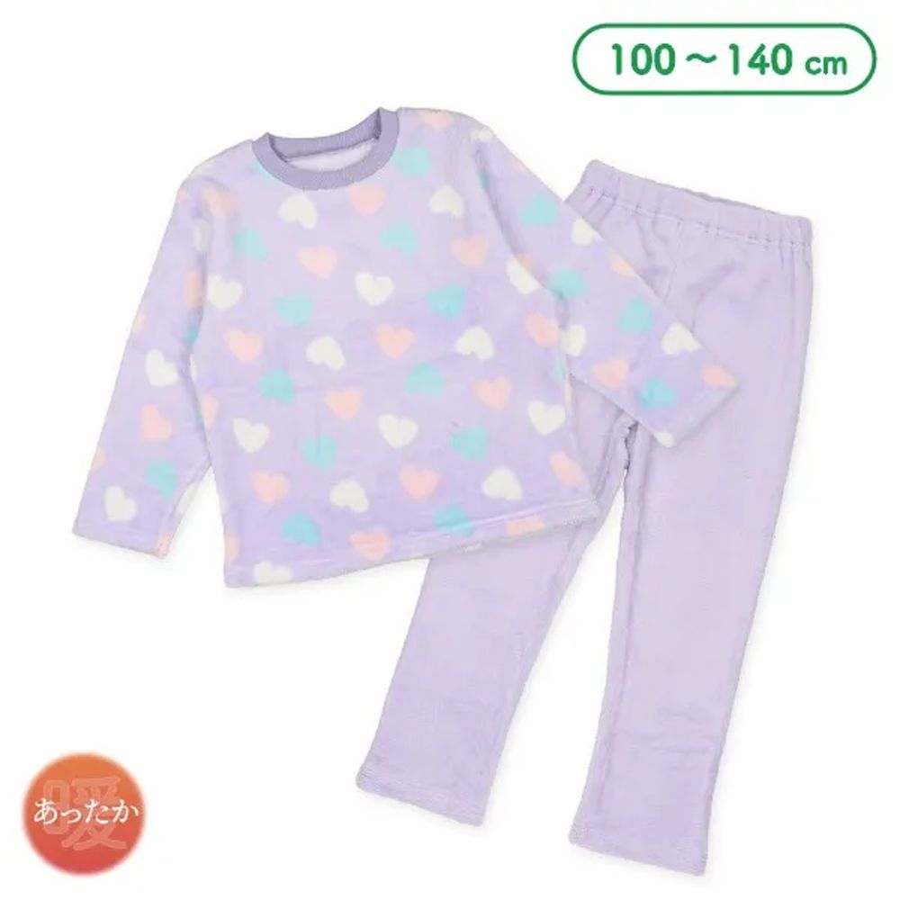 日本西松屋 - 絨毛保暖長袖家居服/睡衣-愛心-紫