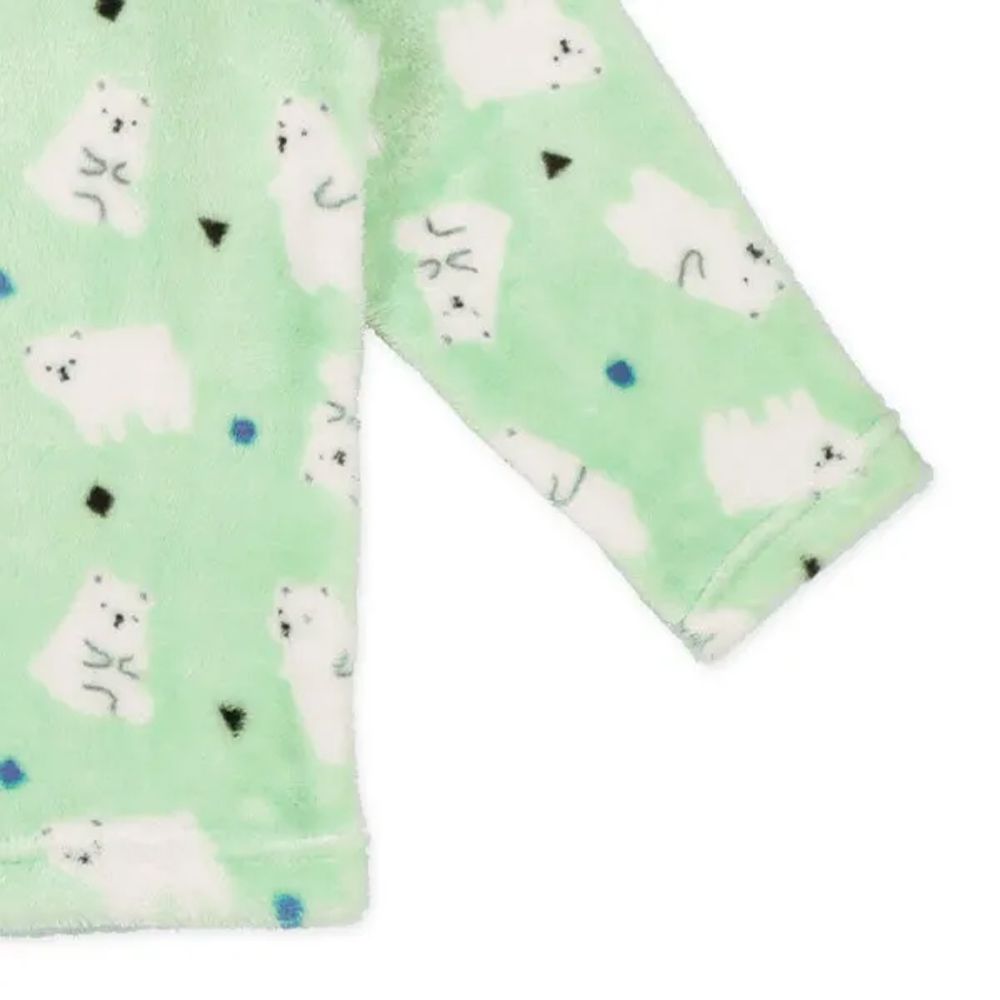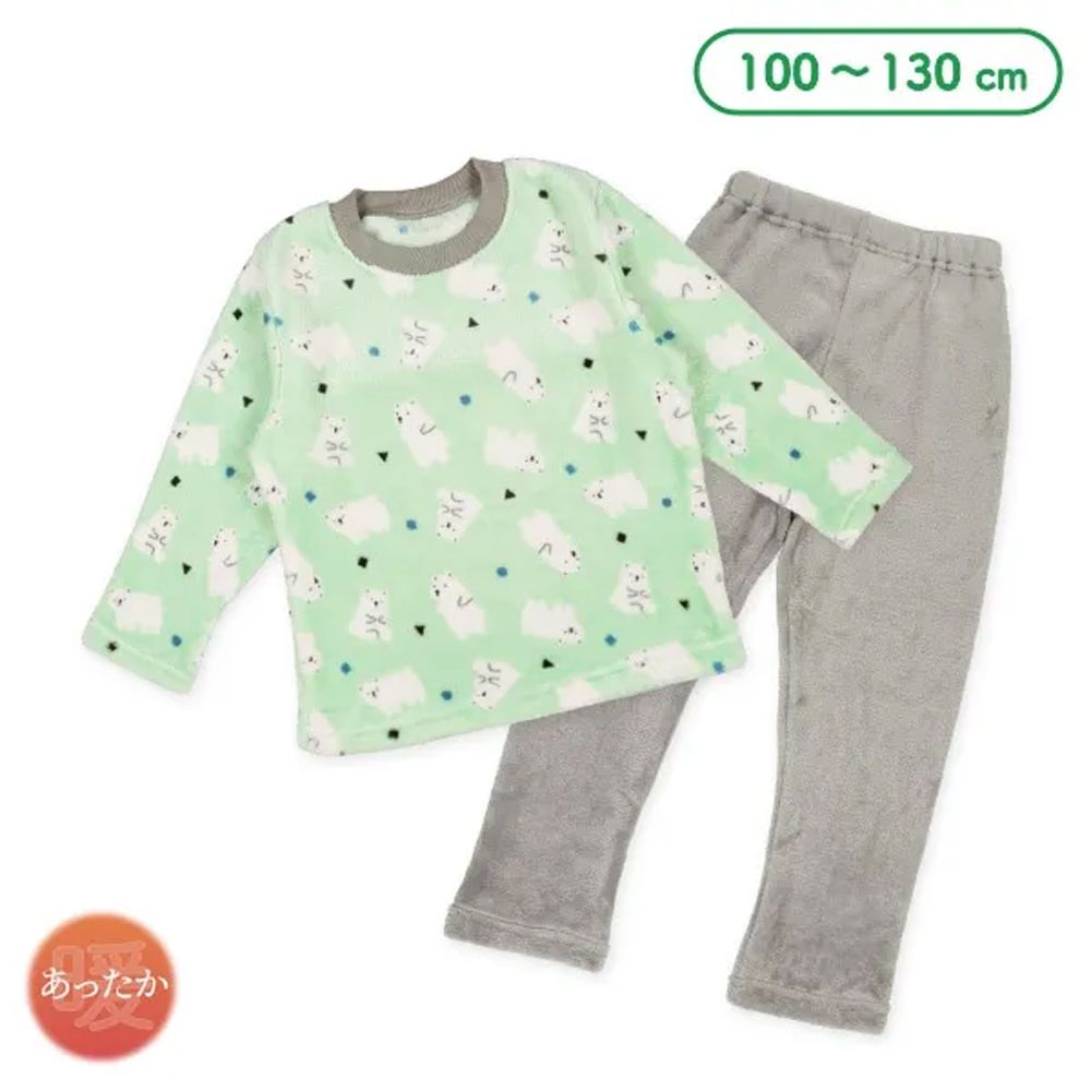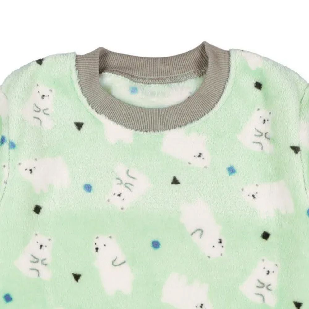日本西松屋 - 絨毛保暖長袖家居服/睡衣-熊熊-淺綠