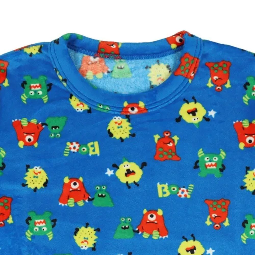 日本西松屋 - 絨毛保暖長袖家居服/睡衣-小怪獸-寶藍