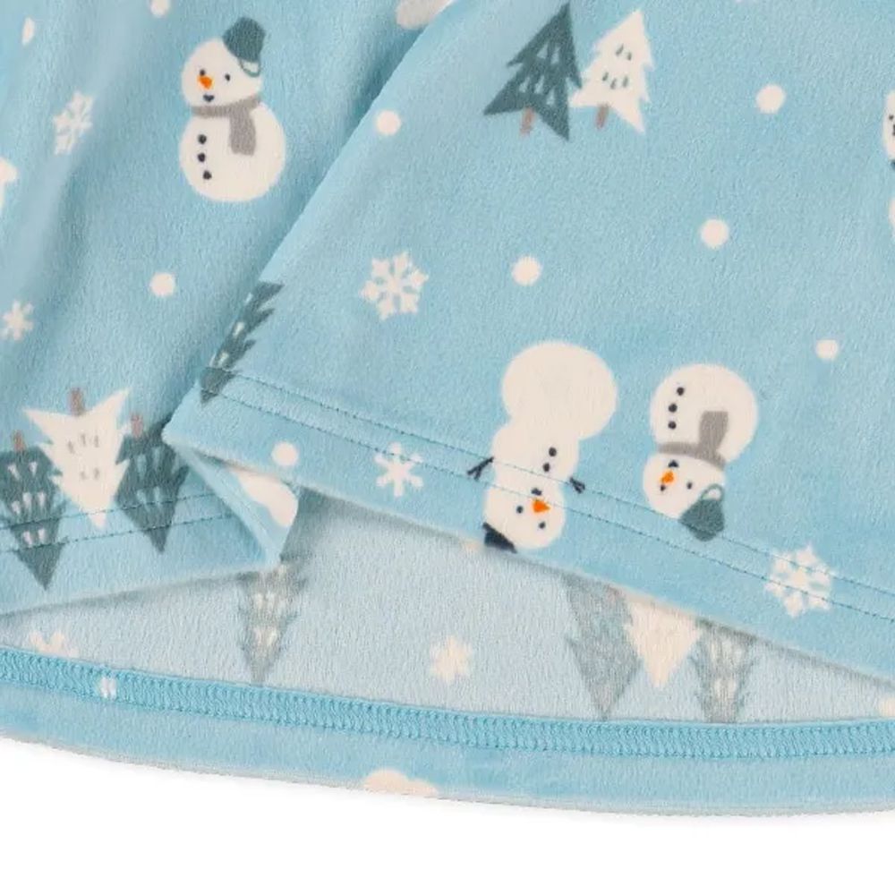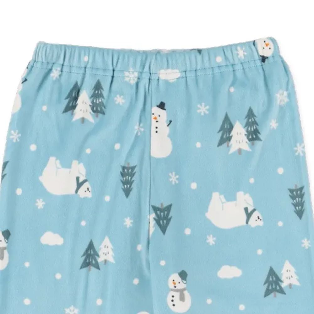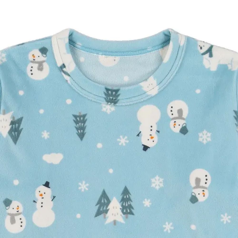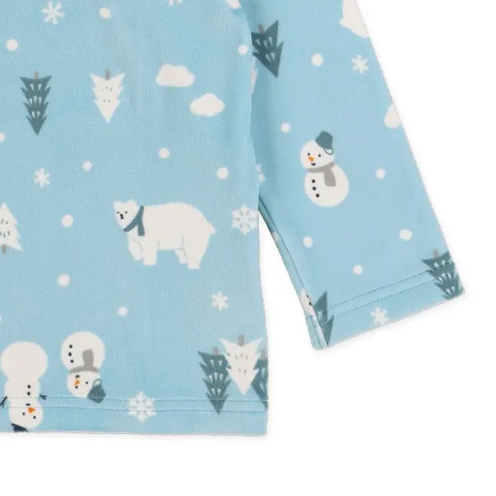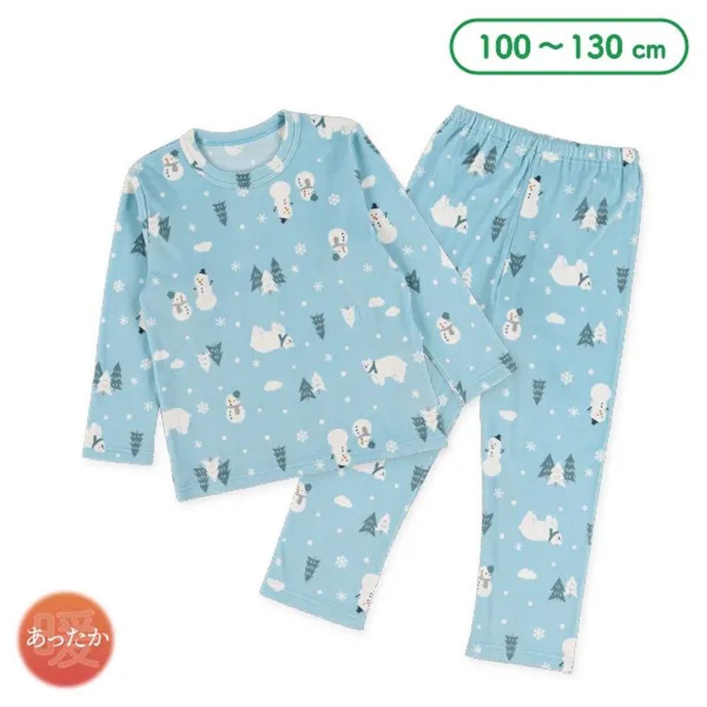 日本西松屋 - 絨毛保暖長袖家居服/睡衣-雪人-水藍
