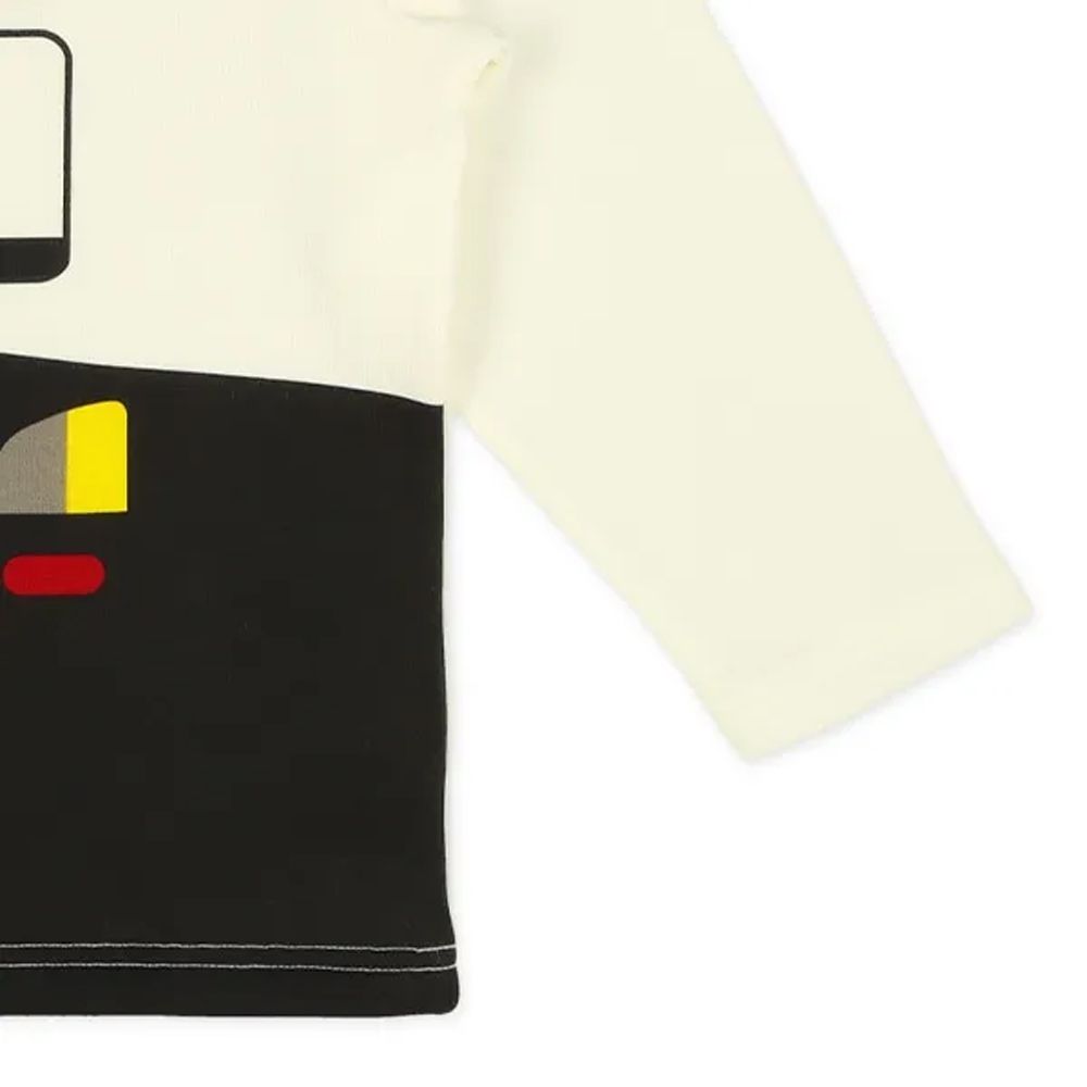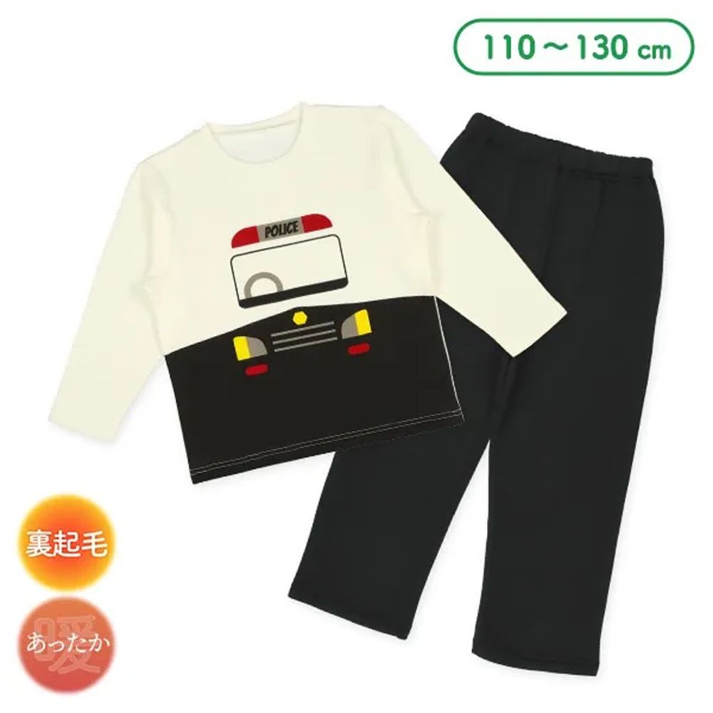 日本西松屋 - 裏起毛保暖長袖家居服/睡衣-警車-白X黑