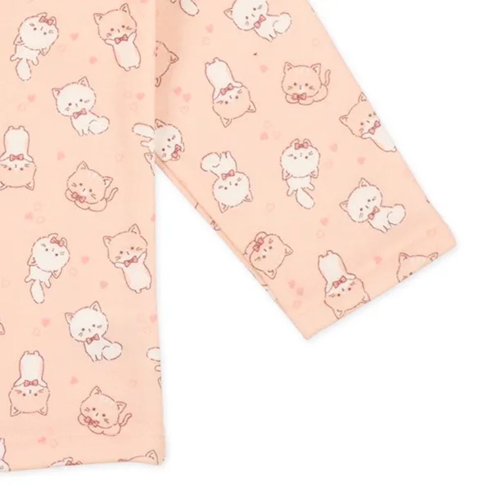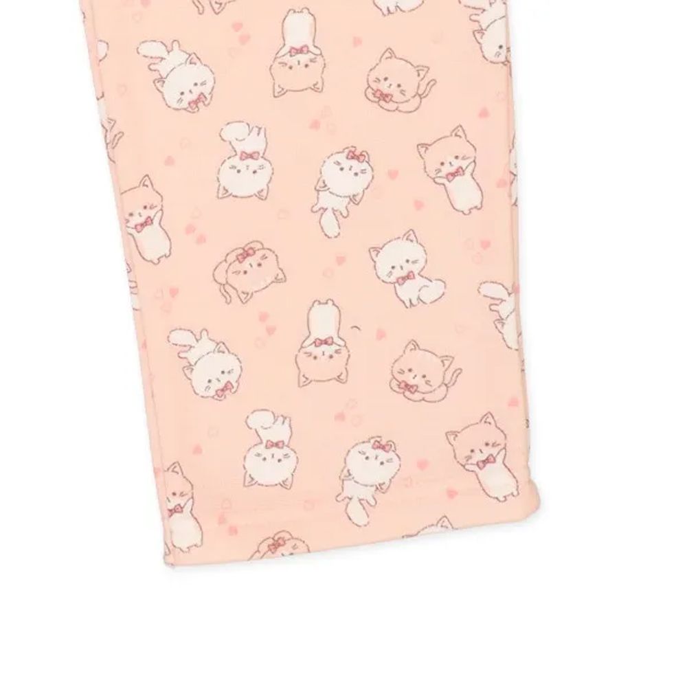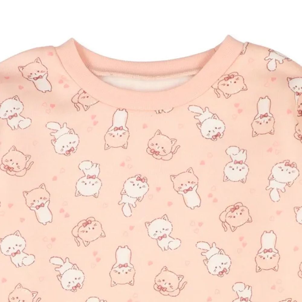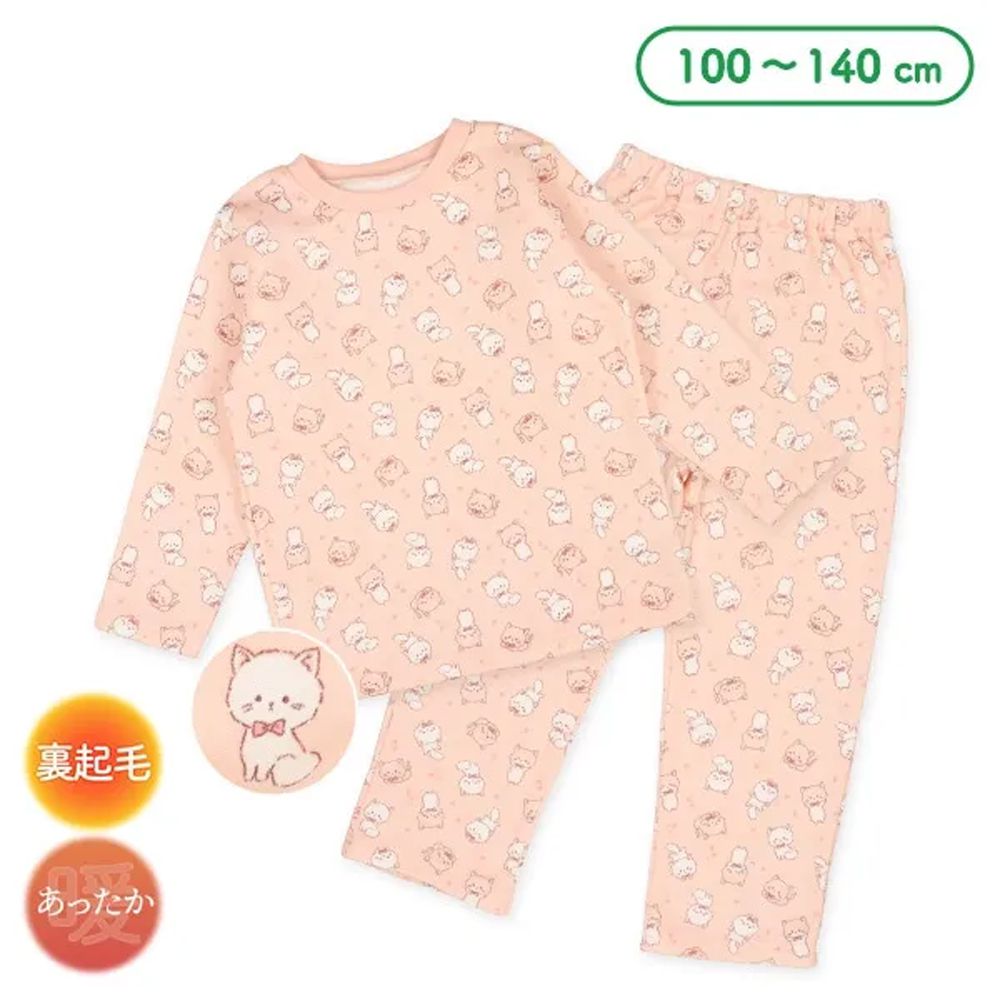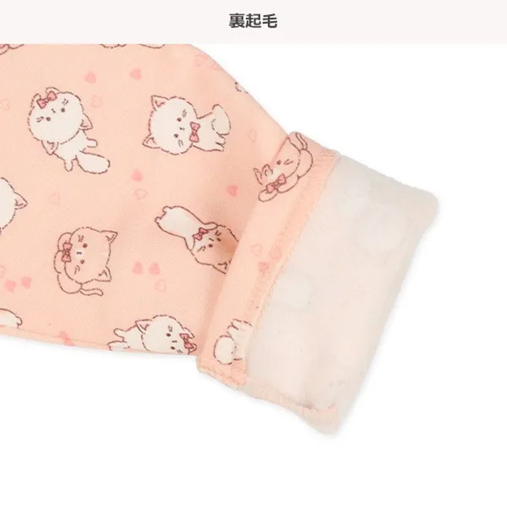 日本西松屋 - 裏起毛保暖長袖家居服/睡衣-貓貓-珊瑚粉