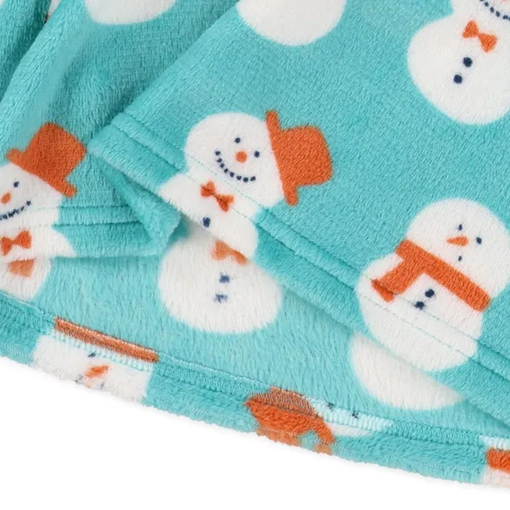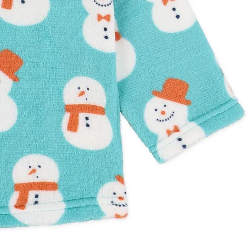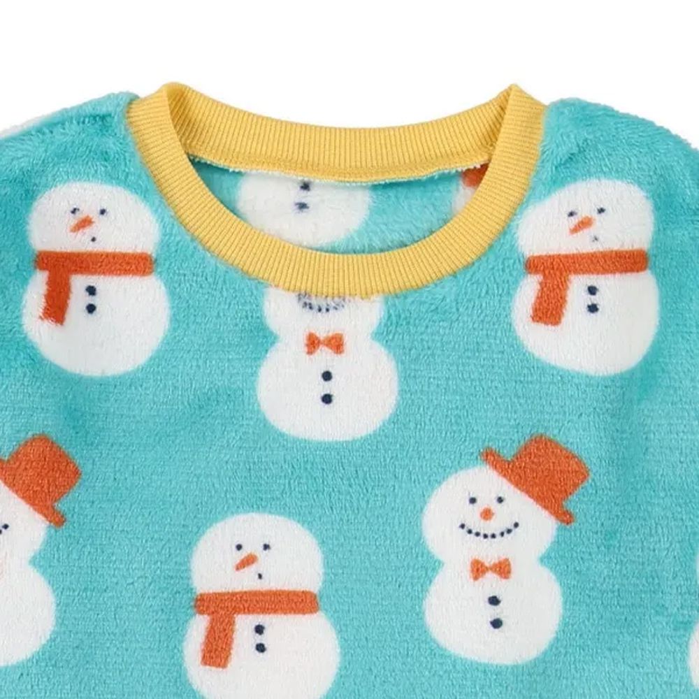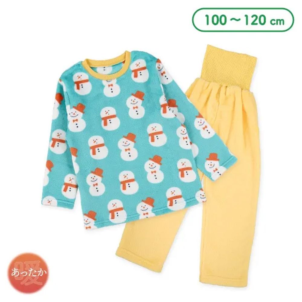 日本西松屋 - 腹卷絨毛保暖長袖家居服/睡衣-雪人-藍綠X黃