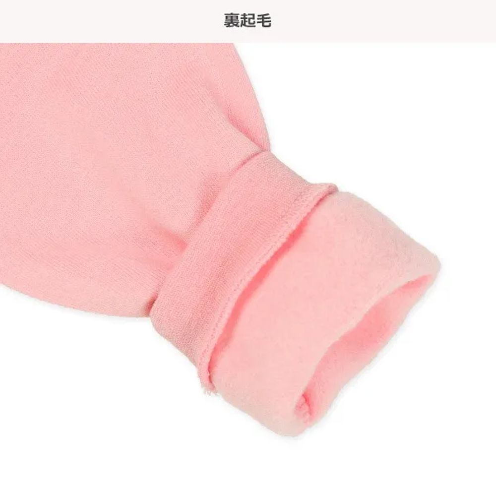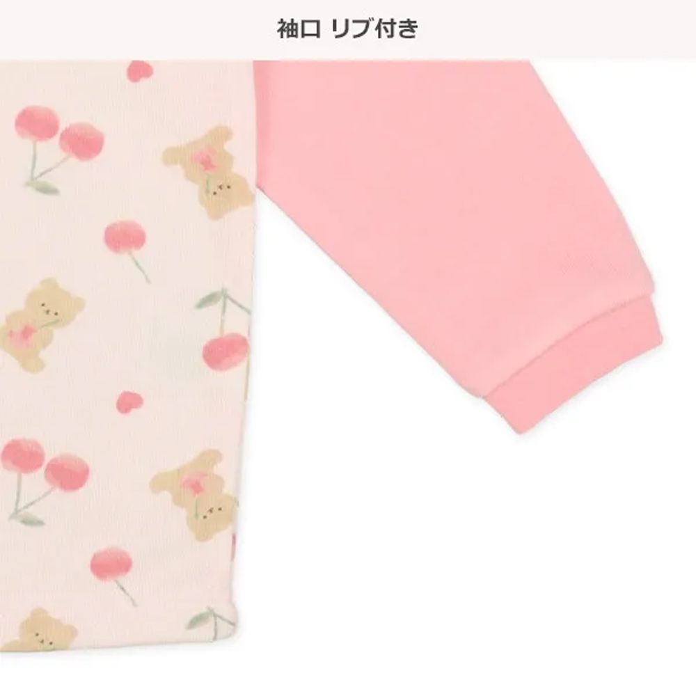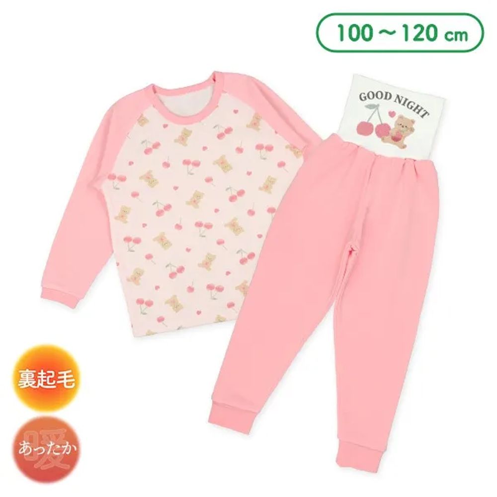 日本西松屋 - 腹卷裏起毛保暖長袖家居服/睡衣-小熊櫻桃-粉紅