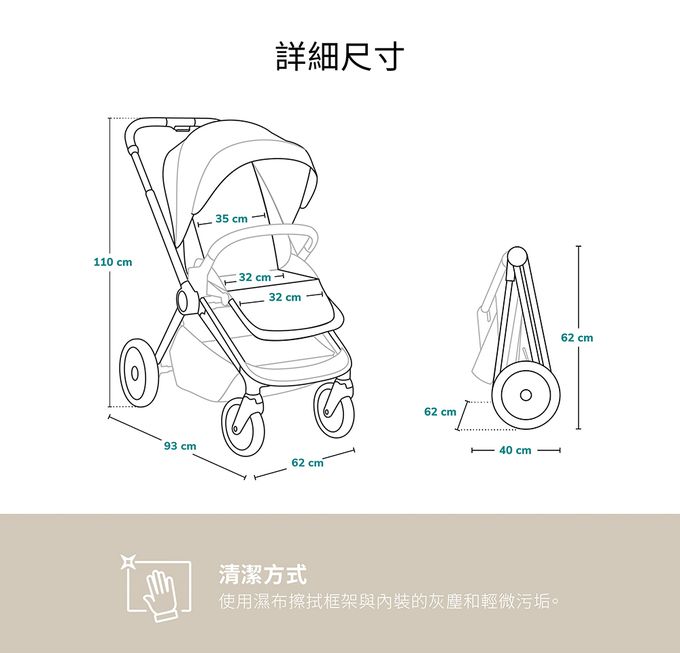 詳細尺寸:展開:W62 x D93 x H110cm 摺疊:W62 x D40 x H62cm