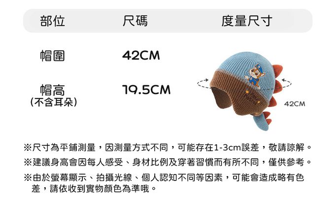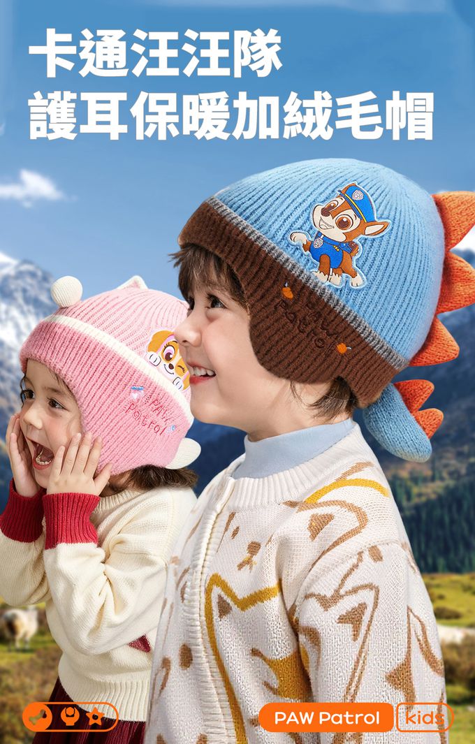 品名:卡通汪汪隊護耳保暖加絨立體毛帽