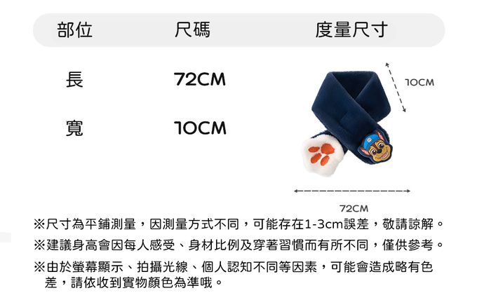 • 品名:卡通汪汪隊立體狗爪絨毛圍巾72x10cm