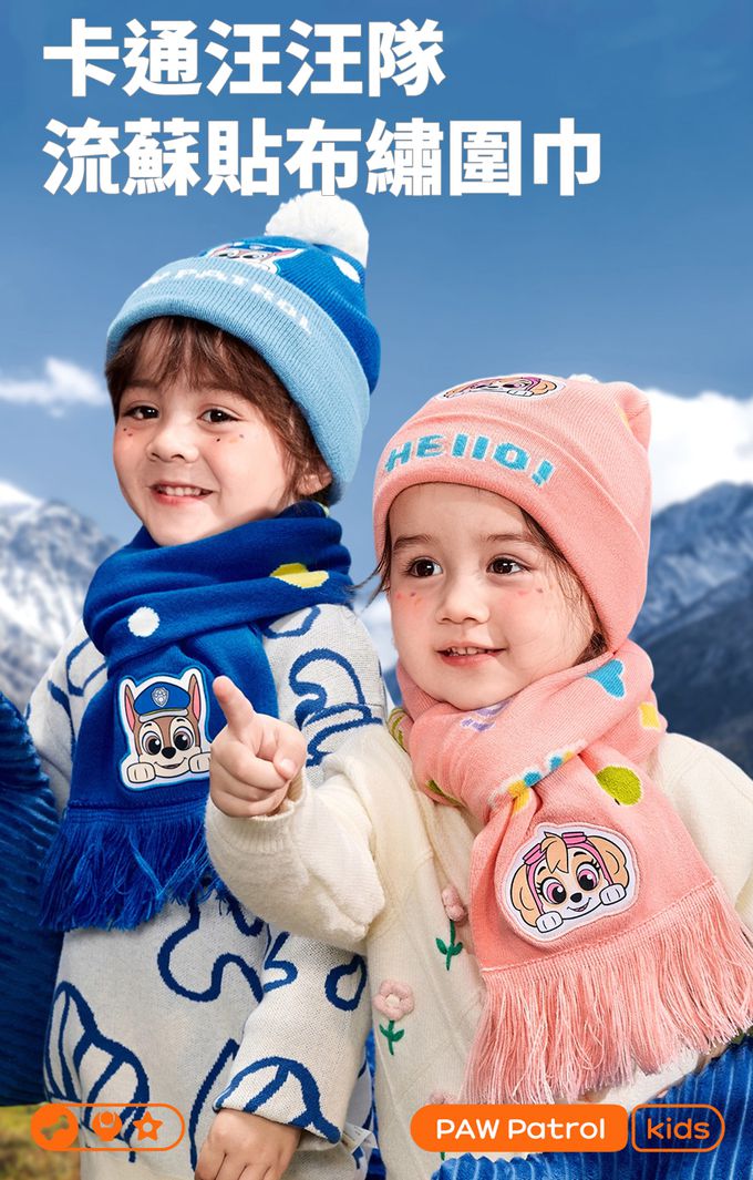 • 品名:卡通汪汪隊流蘇貼布繡圍巾85x10cm