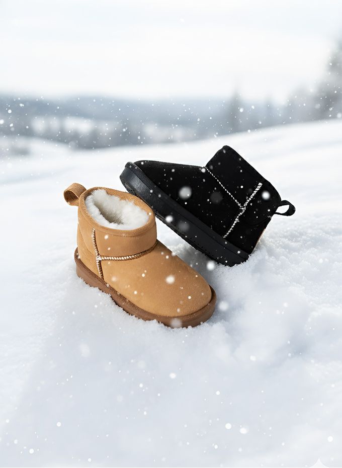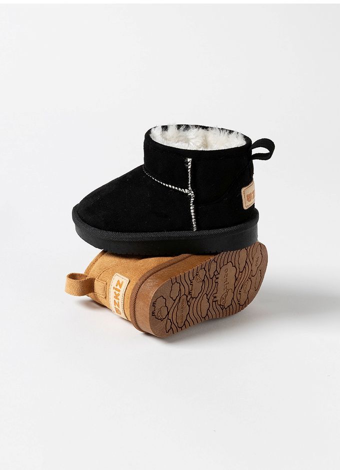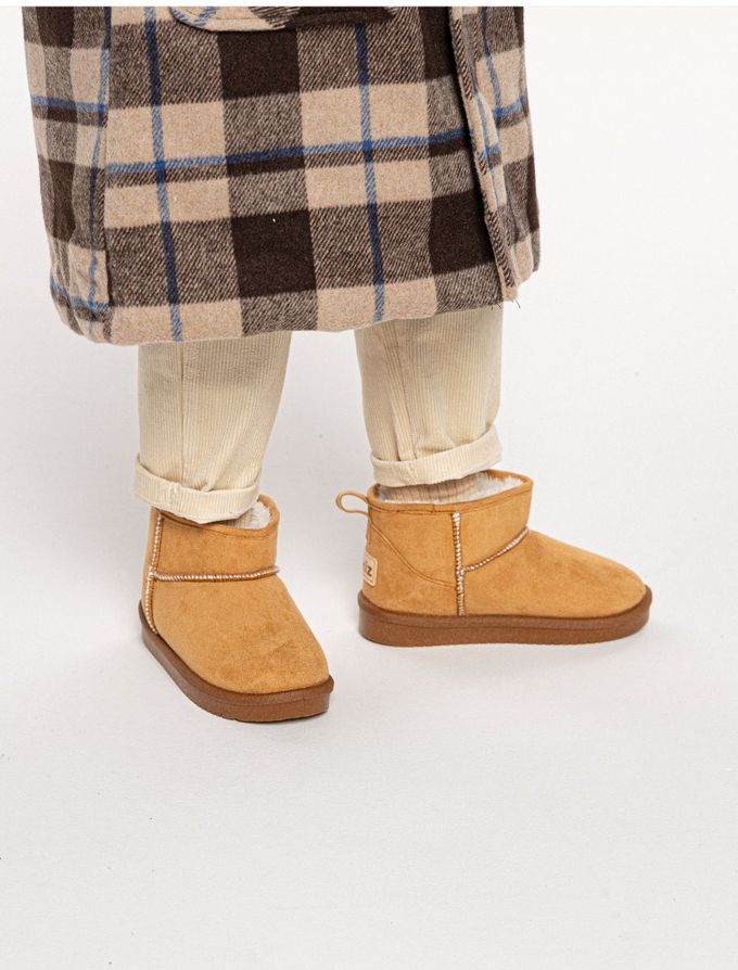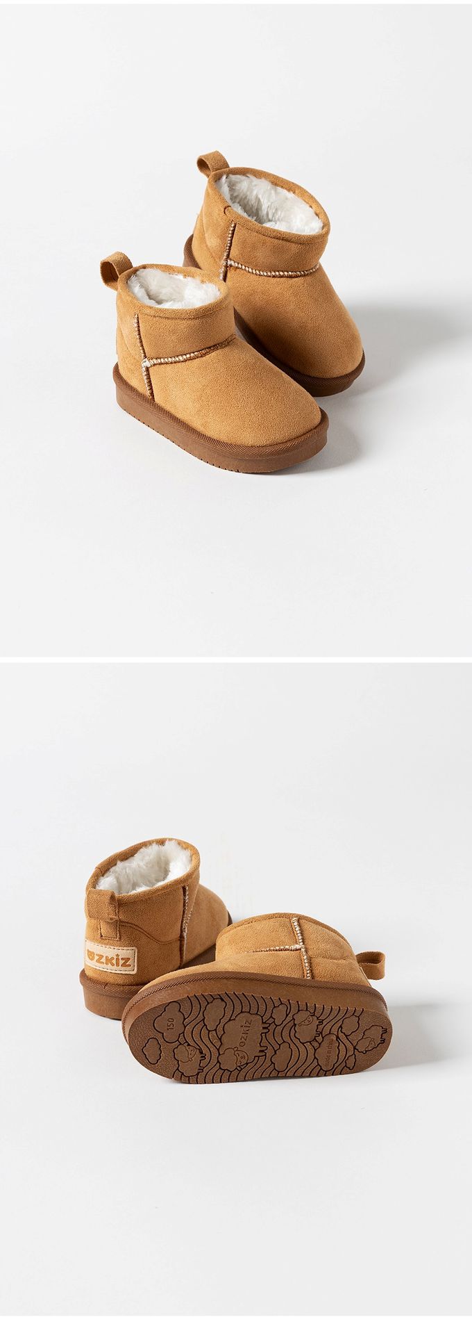 韓國 OZKIZ - 保暖毛絨防滑底短筒雪靴-駝