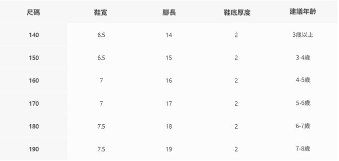1. 尺寸表單位皆為公分(cm),實際尺寸會因材質特性、測量起迄點等因素略有誤差。2. 每個尺寸的建議年齡、建議身高僅供參考,每位孩子發育狀況各有不同,建議參考寶貝現有的鞋子尺寸做對照。3. 請勿丟入洗衣機、烘乾機,以及漂白劑、染色劑等化學藥劑。4. 若表面有輕微髒污,請以濕紙巾輕擦即可。5. 每件商品於拍攝時均力求忠實呈現,但因每台電腦、手機或平板等設備之螢幕亮度、解析度不同,可能會有些許色差,謝謝媽咪爸比們的體諒。