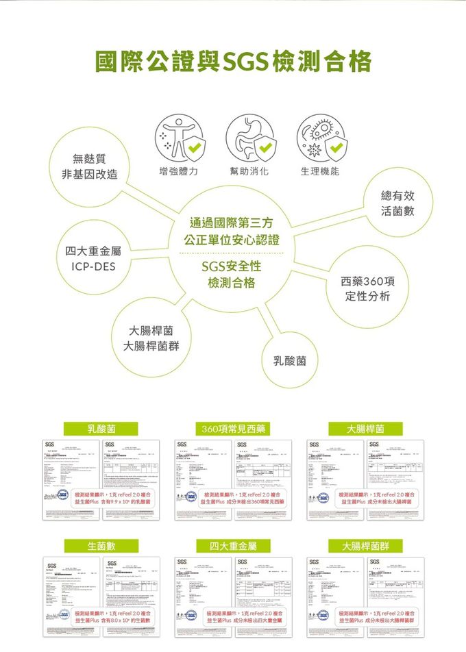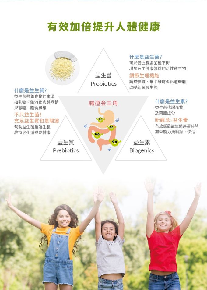 成分:玉米來源可溶性纖維(日本專利水溶性膳食纖維Fiberso|®-2)、菊糖、優格粉、脫脂奶粉、麥芽糊精、全脂奶粉、檸檬酸、酵母粉、脂肪酸甘油酯(植物性)、乳糖、異麥芽寡糖、植物乳桿菌LP28、鼠李糖乳桿菌LRH113、植物乳桿菌LP198、乳雙歧桿菌BAL06、短雙歧桿菌BR18、乾酪乳桿菌LC122、副乾酪乳桿菌LPC12、醱酵乳桿菌LF26、鼠李糖乳桿菌LRH10、嗜熱鏈球菌ST37、凝結芽孢桿菌BC1031、嗜酸乳桿菌LA1063、長雙岐桿菌BL986、兩歧雙岐桿菌BB14、德氏乳桿菌LDL114、羅伊氏乳桿菌LR21、瑞士乳桿菌LH43、兩歧雙歧桿菌BGN4、凝結芽孢桿菌GBI-30.6086