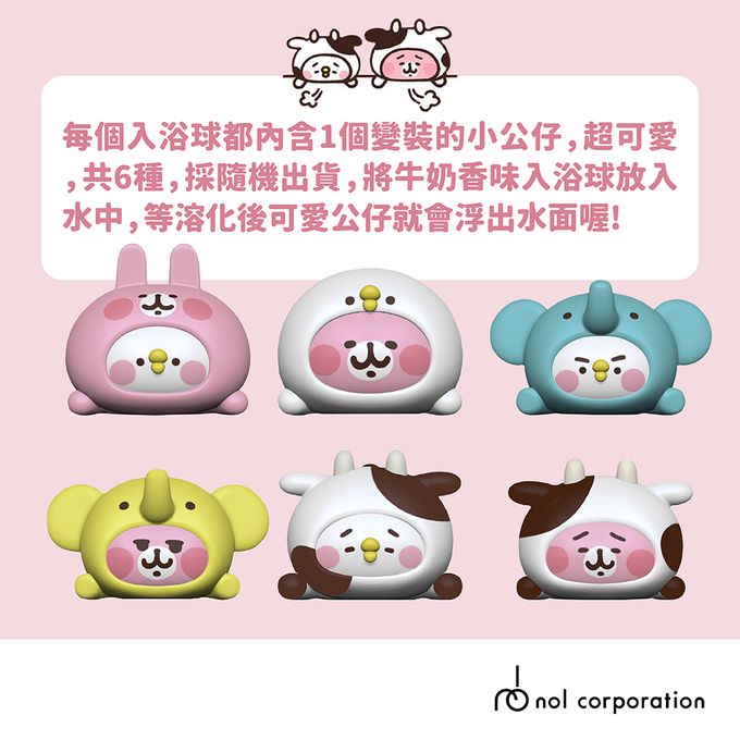 內附兔兔或P助的變裝模樣小公仔,正面&側面都一樣可愛又療癒喔!泡澡兼具收集樂趣~
