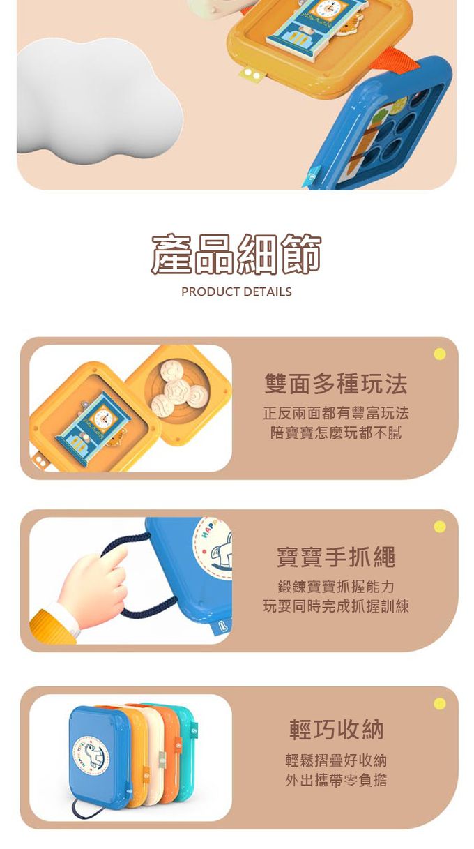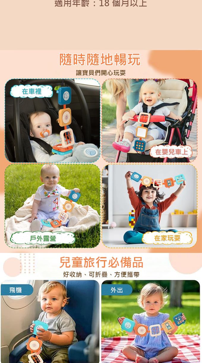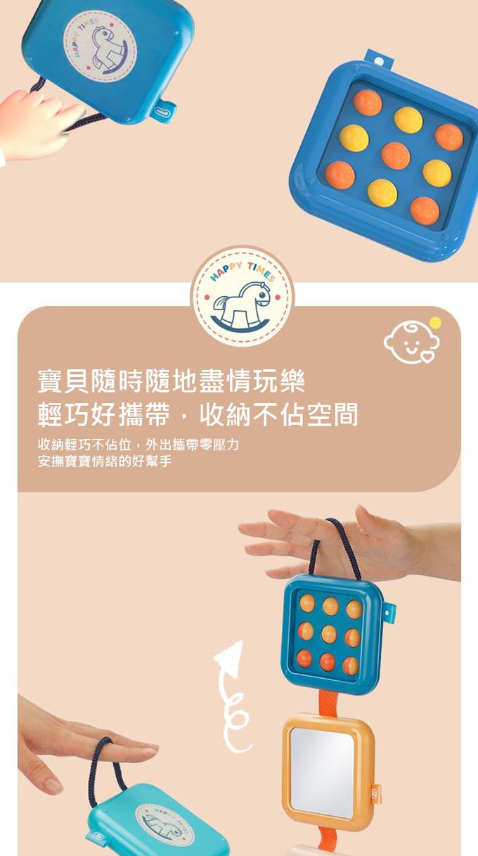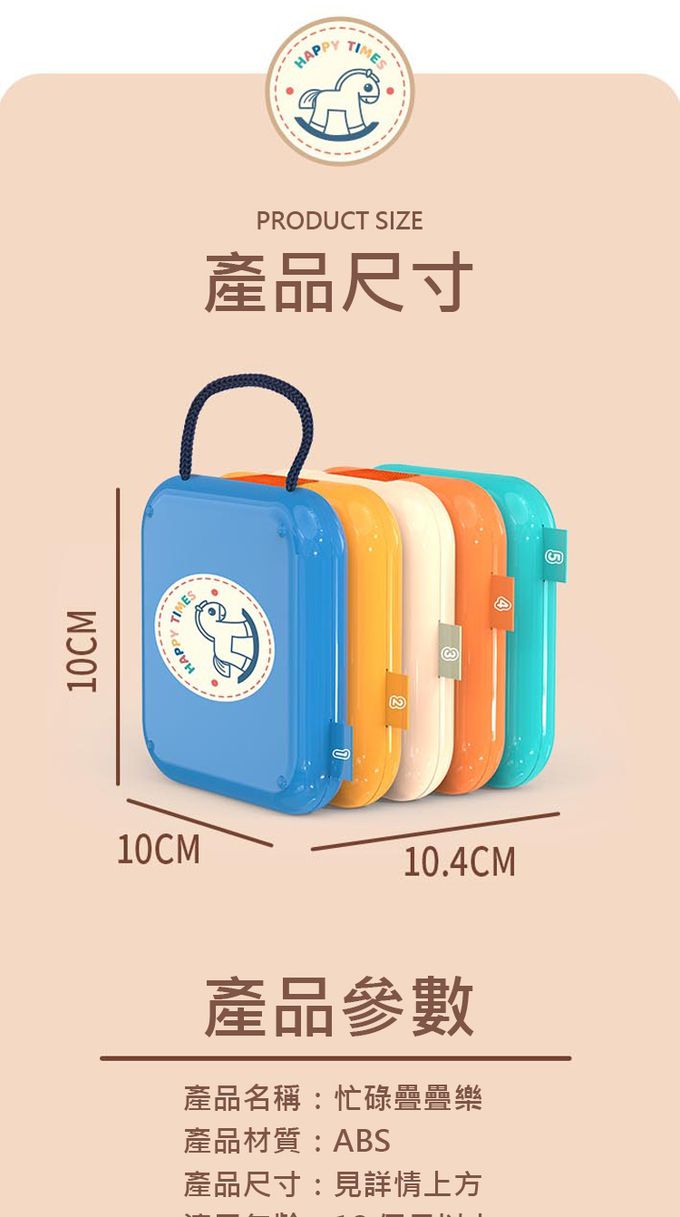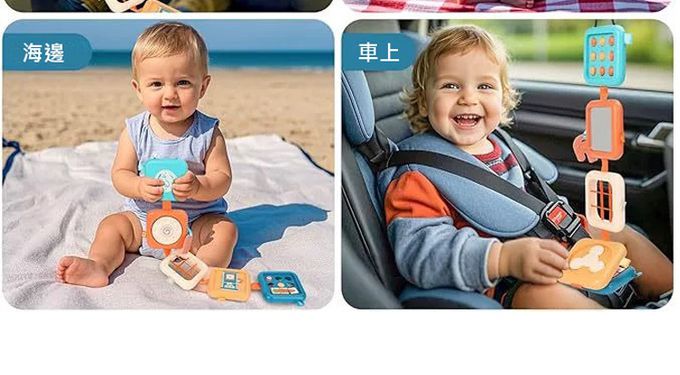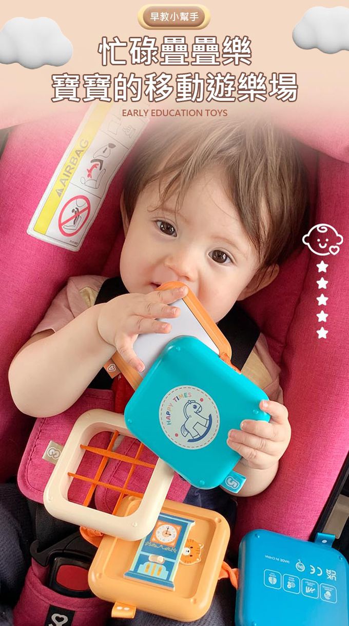 3.輕便易攜帶設計: 玩具體積輕巧,且可以串聯或疊放收納,方便外出時帶上,是安撫寶寶、打發時間的絕佳幫手。