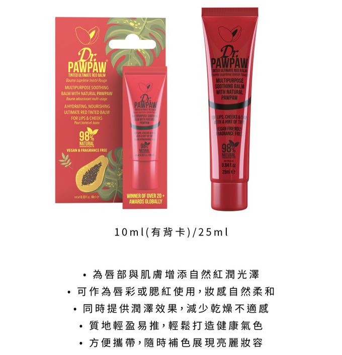 品名:熱戀紅潤色霜 25ml( 英國 木瓜霜 / 潤澤保濕 / 小巧輕盈 /多用途保養 / 修護霜 )