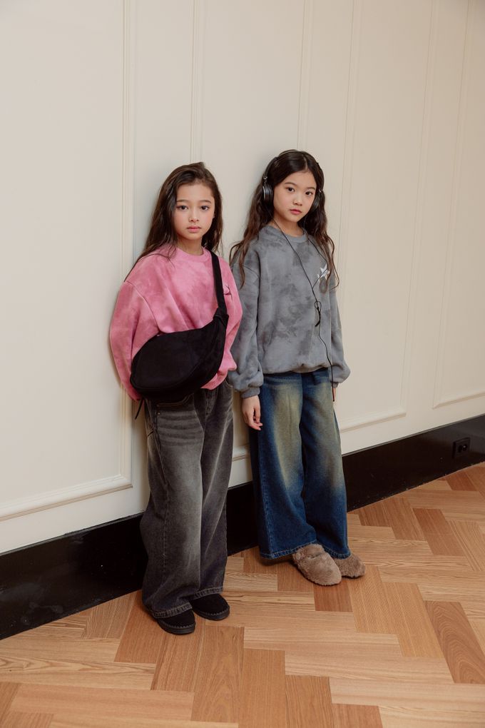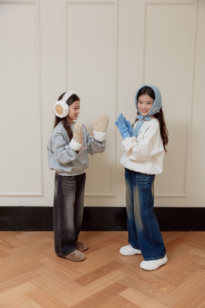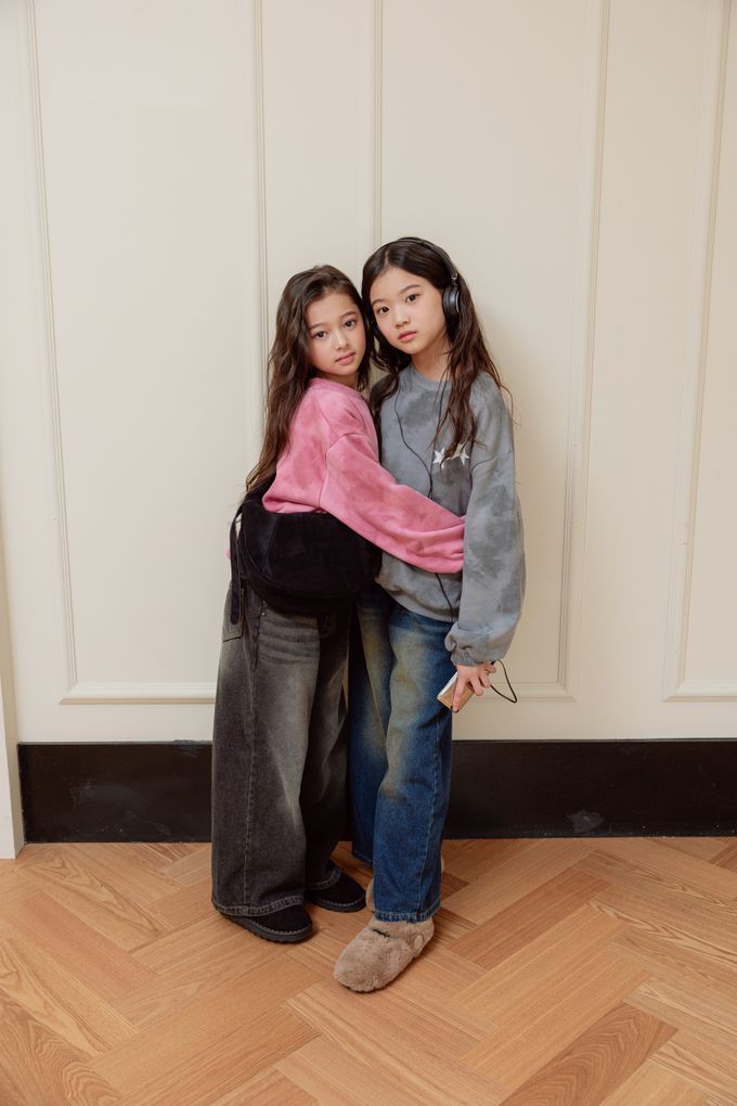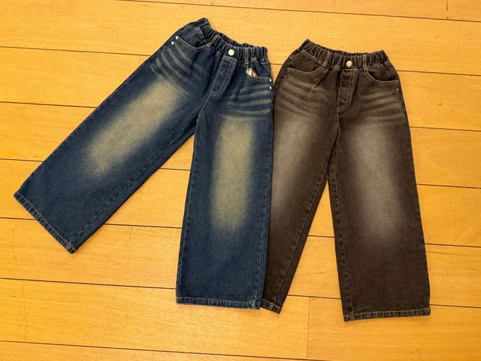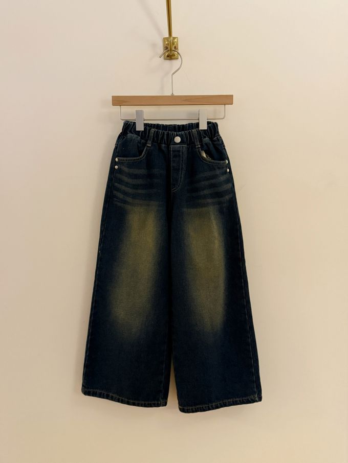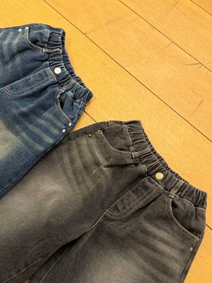 韓國南大門童裝 - sm2 (內磨毛)鬆緊腰復古刷色寬鬆丹寧褲-中青