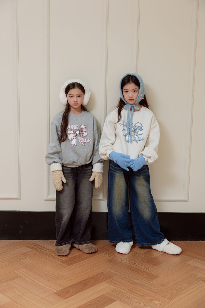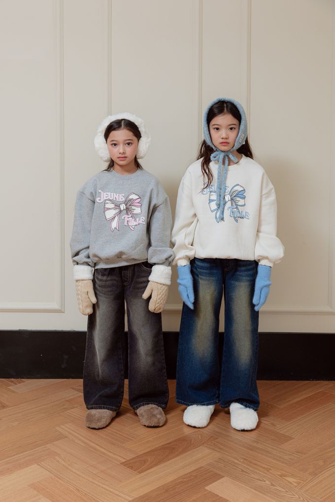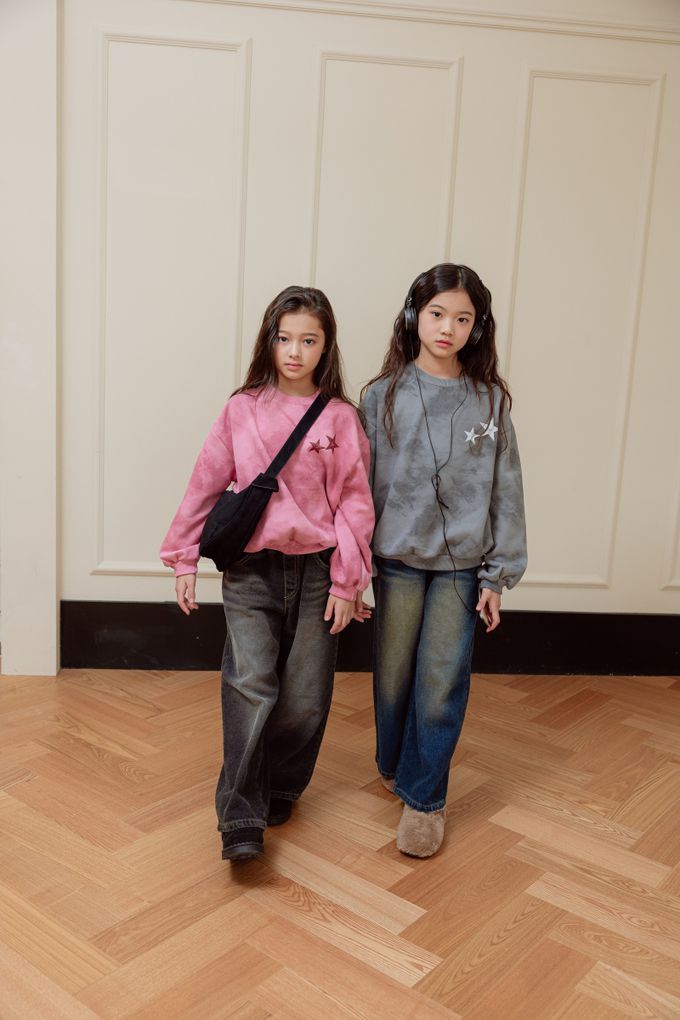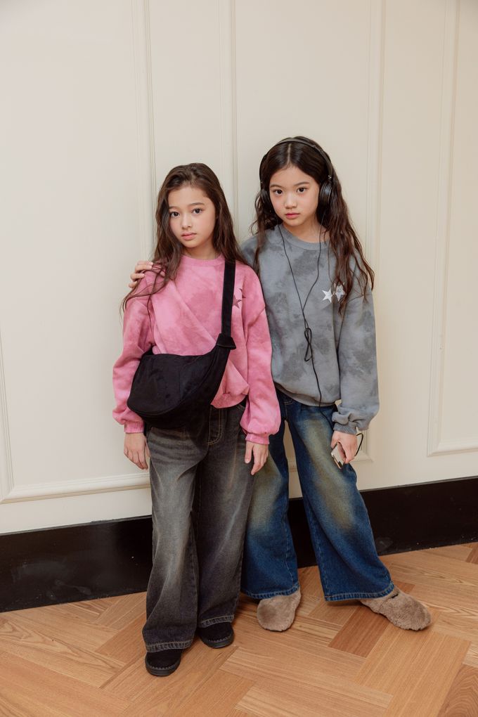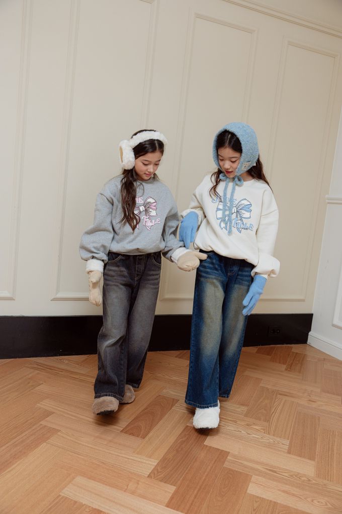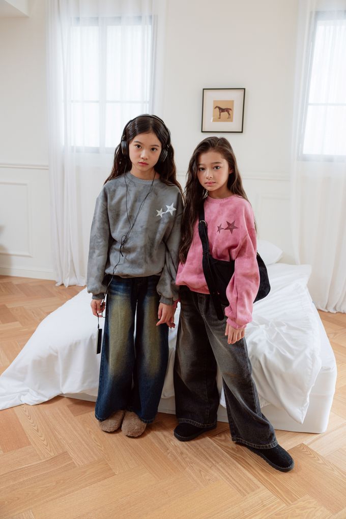韓國南大門童裝 - sm2 (內磨毛)鬆緊腰復古刷色寬鬆丹寧褲-中青