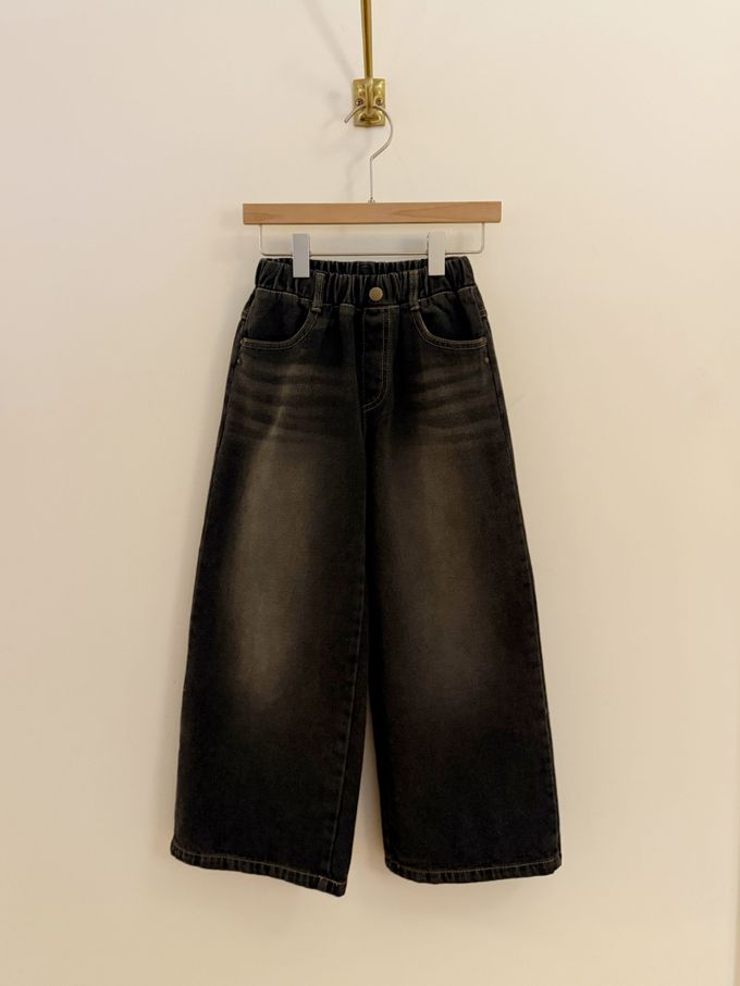 韓國南大門童裝 - sm2 (內磨毛)鬆緊腰復古刷色寬鬆丹寧褲-黑灰