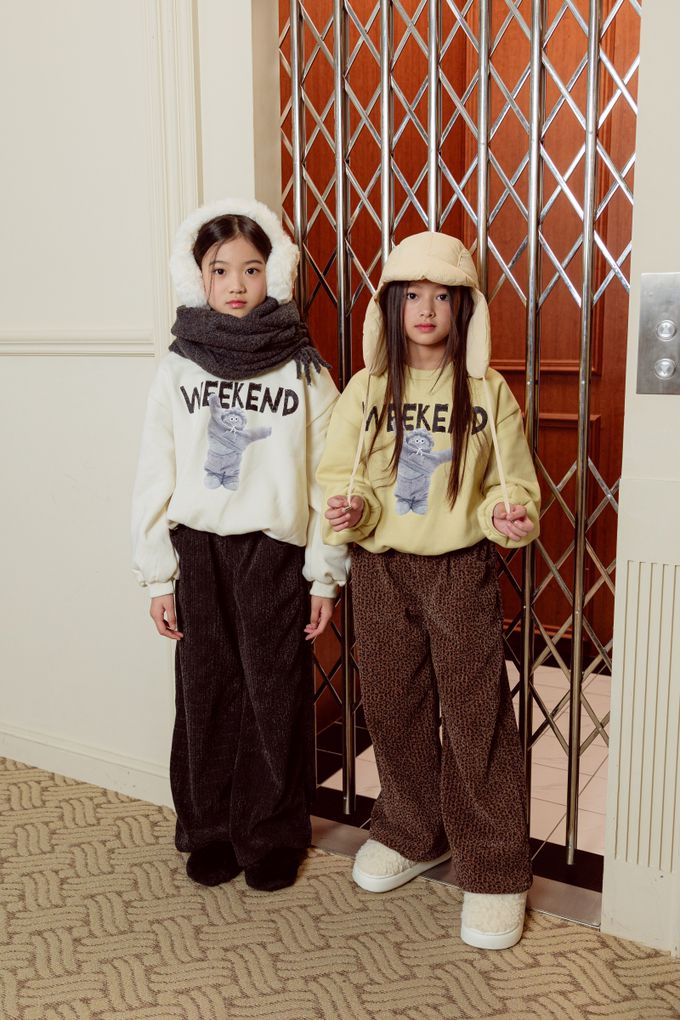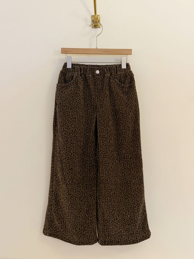 韓國南大門童裝 - sm2 鬆緊腰復古小豹紋寬鬆長褲-咖啡