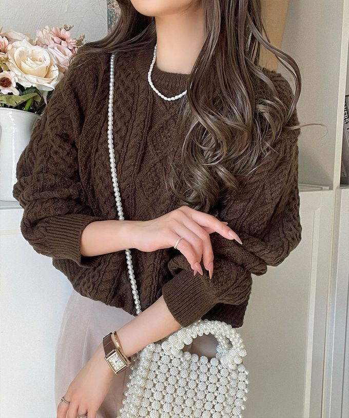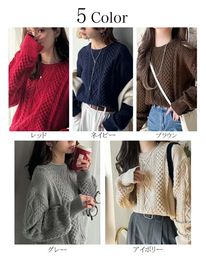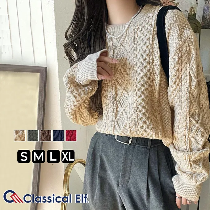 日本 Classical Elf - 經典圓領麻花編織素面毛衣-紅