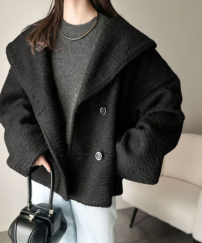 日本 Classical Elf - 注目大翻領優雅毛呢感大衣外套-黑