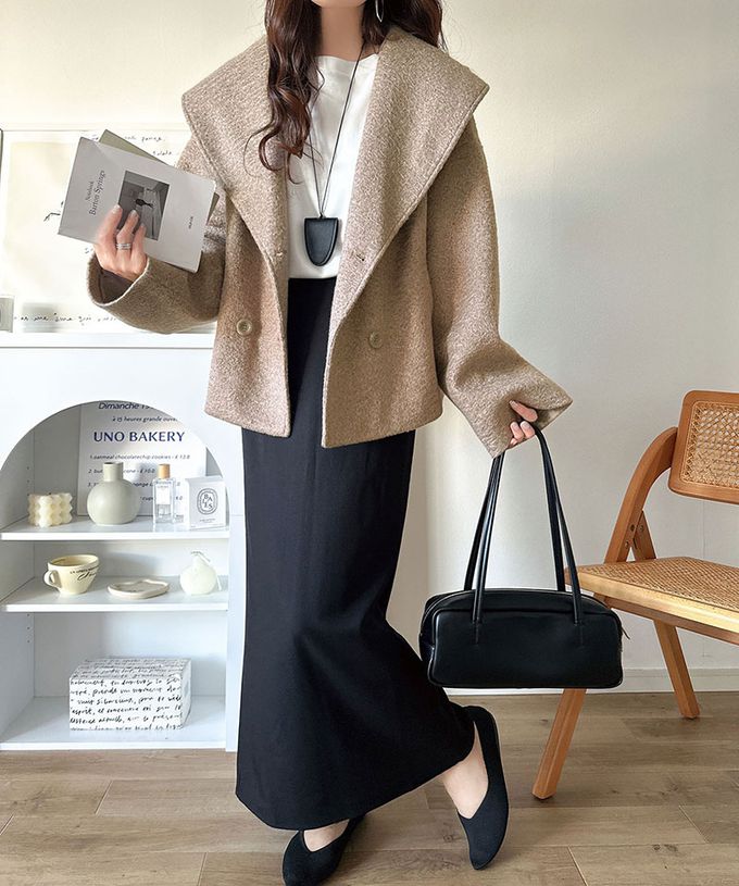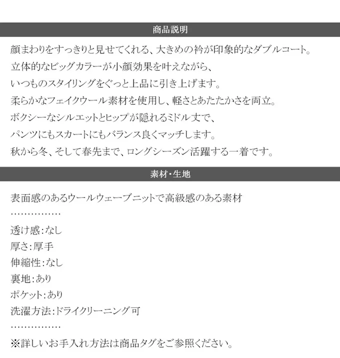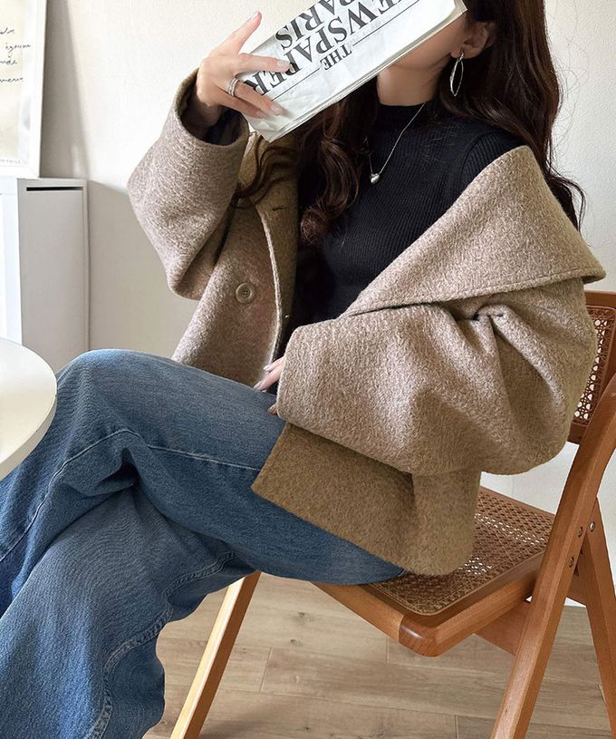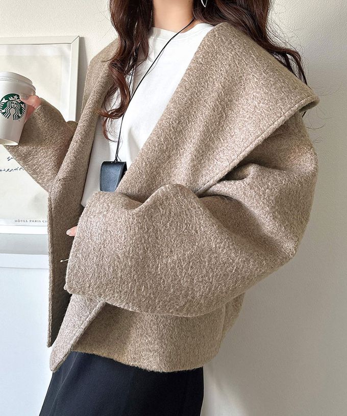 • 品名:注目大翻領優雅毛呢感大衣外套