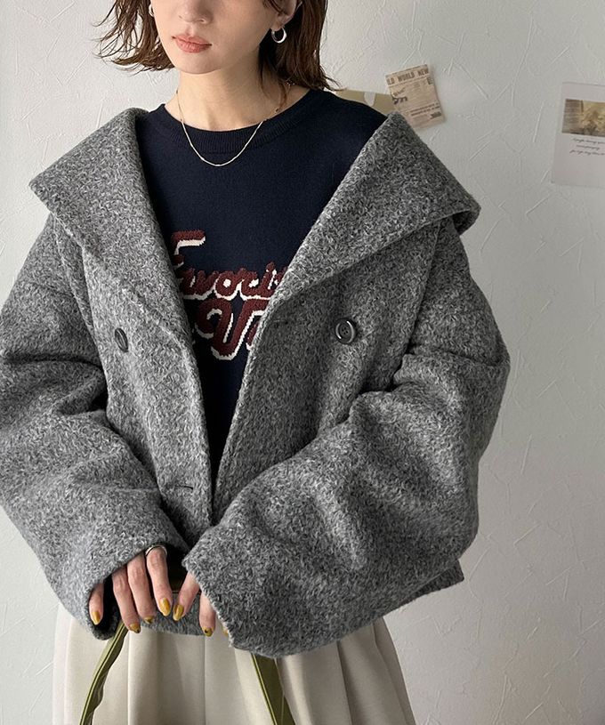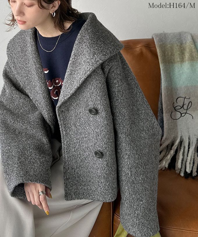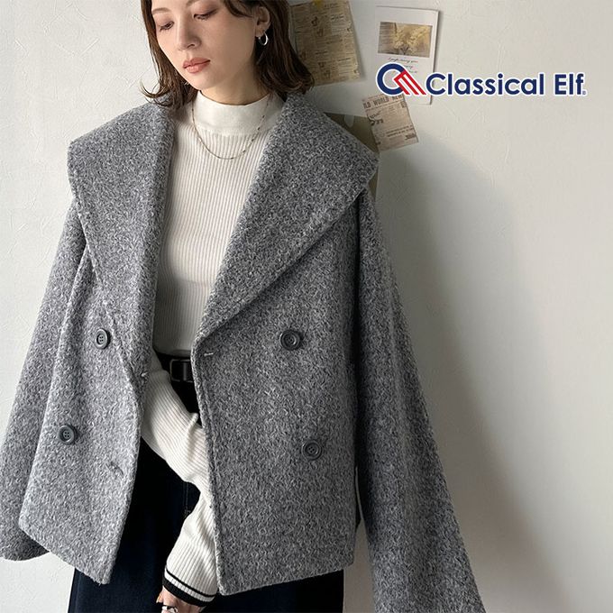 日本 Classical Elf - 注目大翻領優雅毛呢感大衣外套-灰