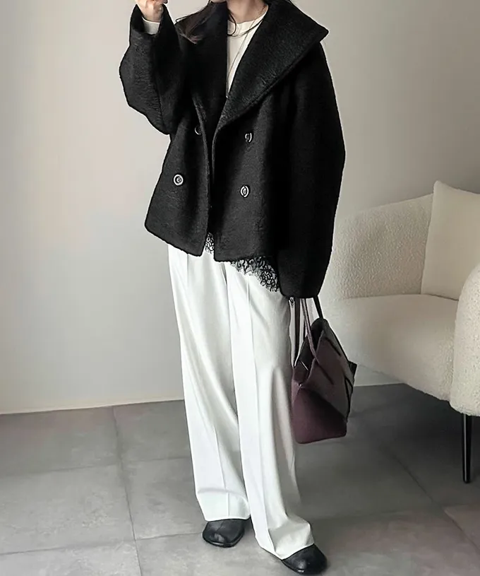 • 品名:注目大翻領優雅毛呢感大衣外套