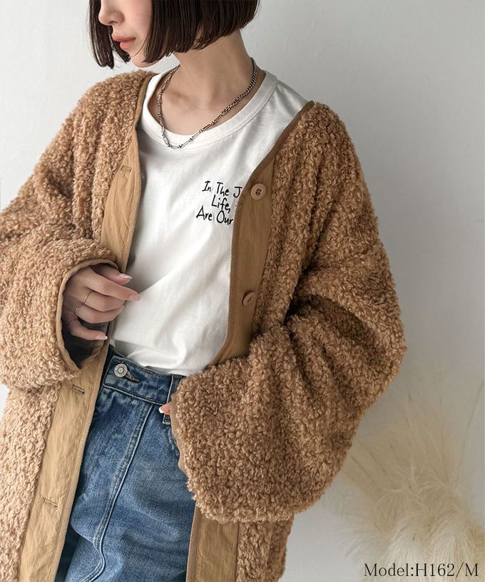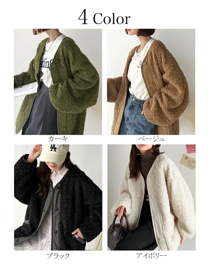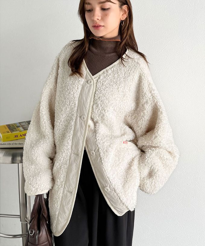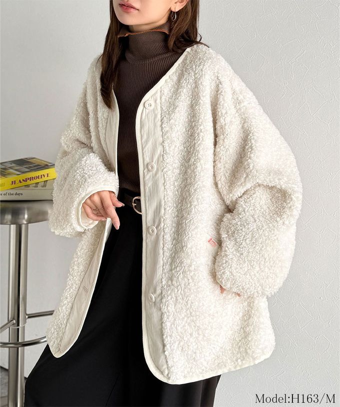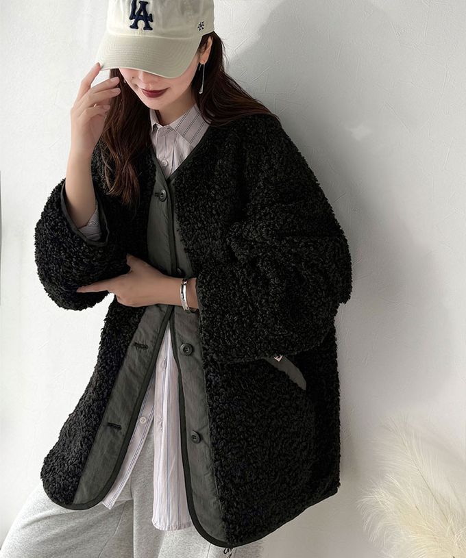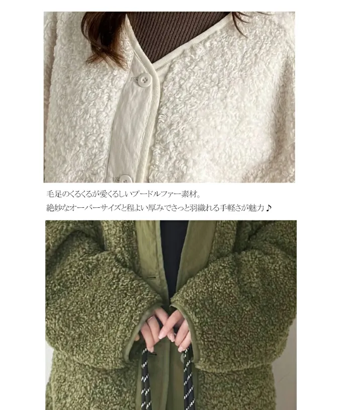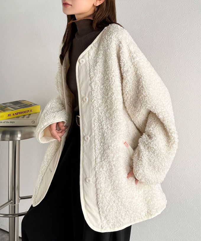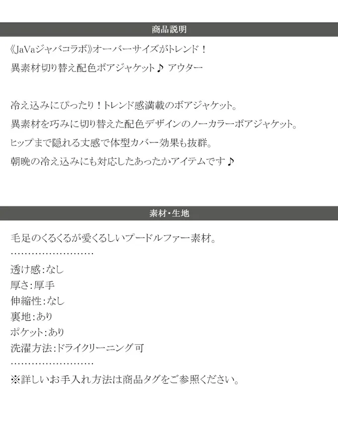 • 品名:Java 異素材保暖毛絨無領寬版外套