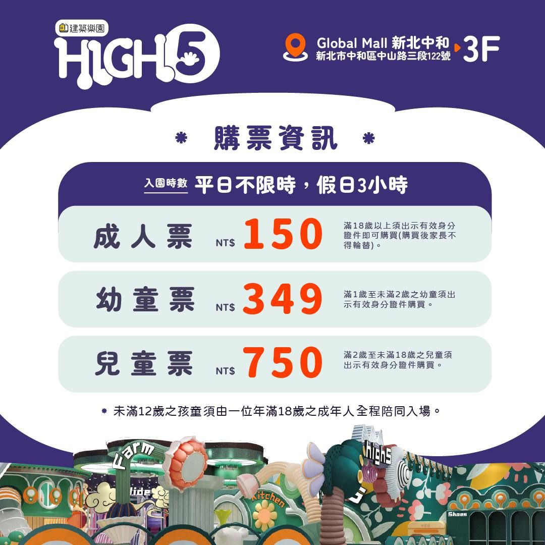 【此為入場電子憑證】 - 購買後請憑「媽咪愛訂單畫面(app/網頁)」,至「HIGH 5 花境計畫@中和環球3F」現場兌換進場。
