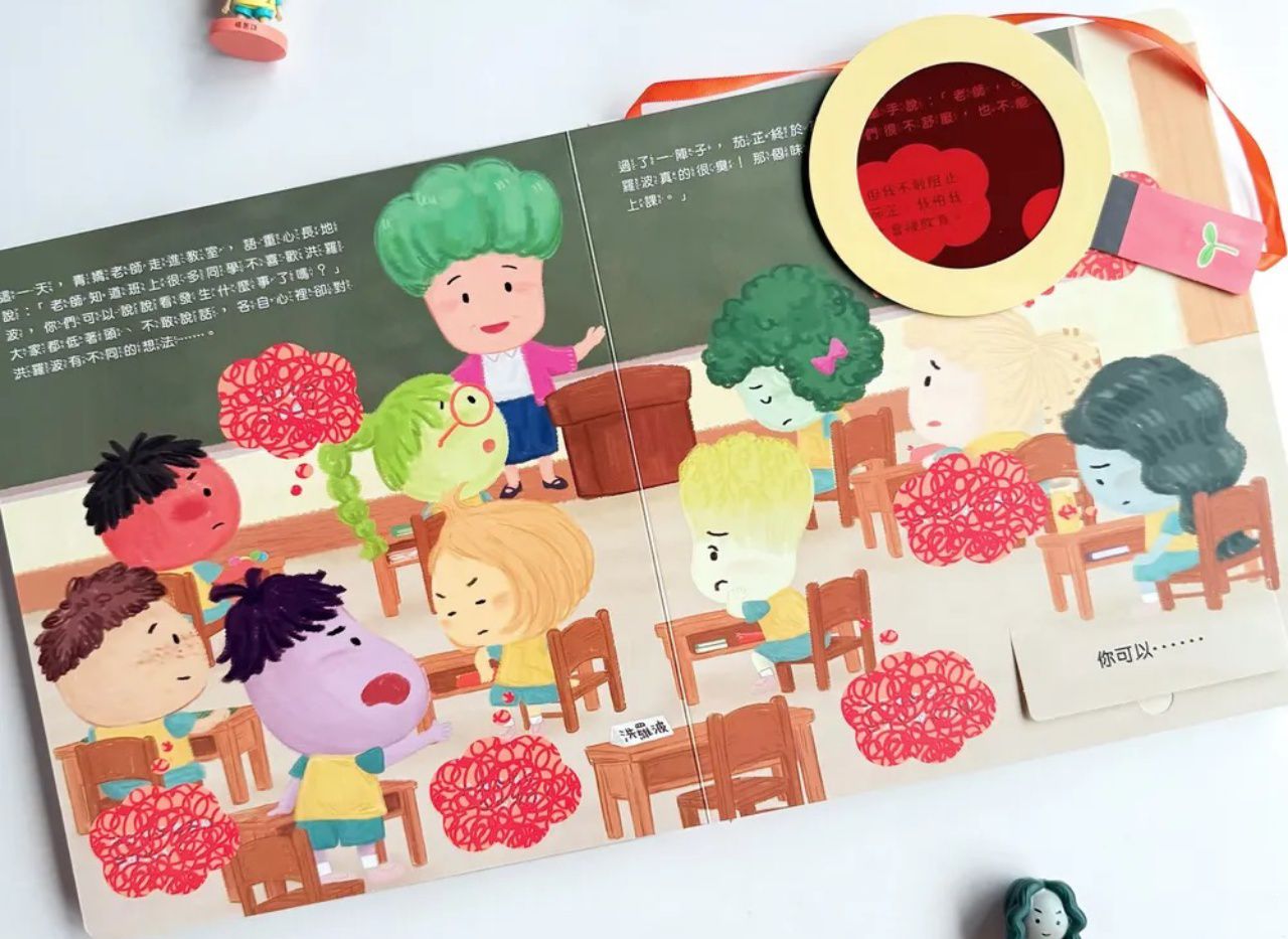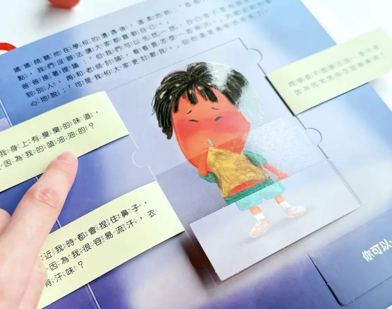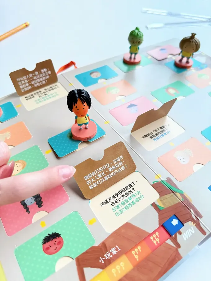 22個互動機關:情境應對推拉窗、異常行為觀察軌道、旁觀者視角放大鏡、情緒翻翻頁、真心話信紙、香味體驗貼紙⋯等設計,提升參與感與理解力!