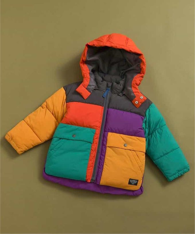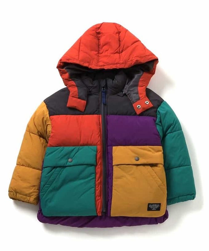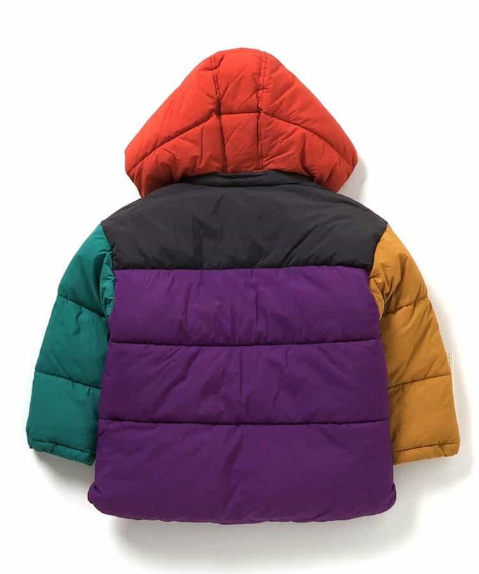 日本 BREEZE - [可機洗]蓬鬆輕盈時尚連帽保暖外套-撞色-彩虹