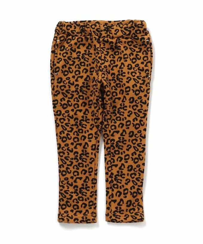 日本 BREEZE - 百搭內刷毛鬆緊合身長褲-豹紋-焦糖