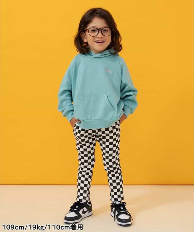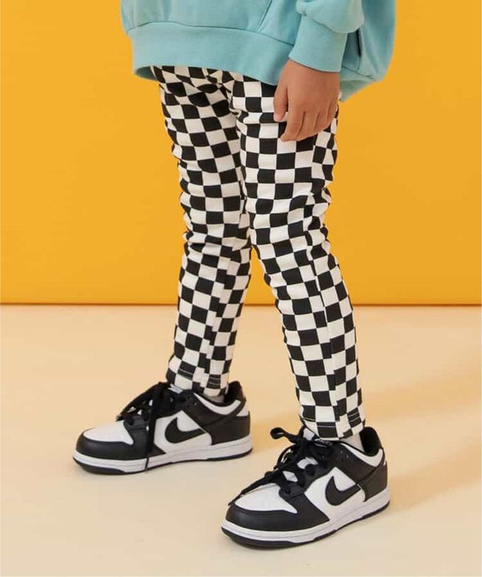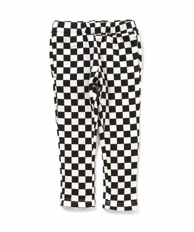 日本 BREEZE - 百搭內刷毛鬆緊合身長褲-棋盤格-黑白