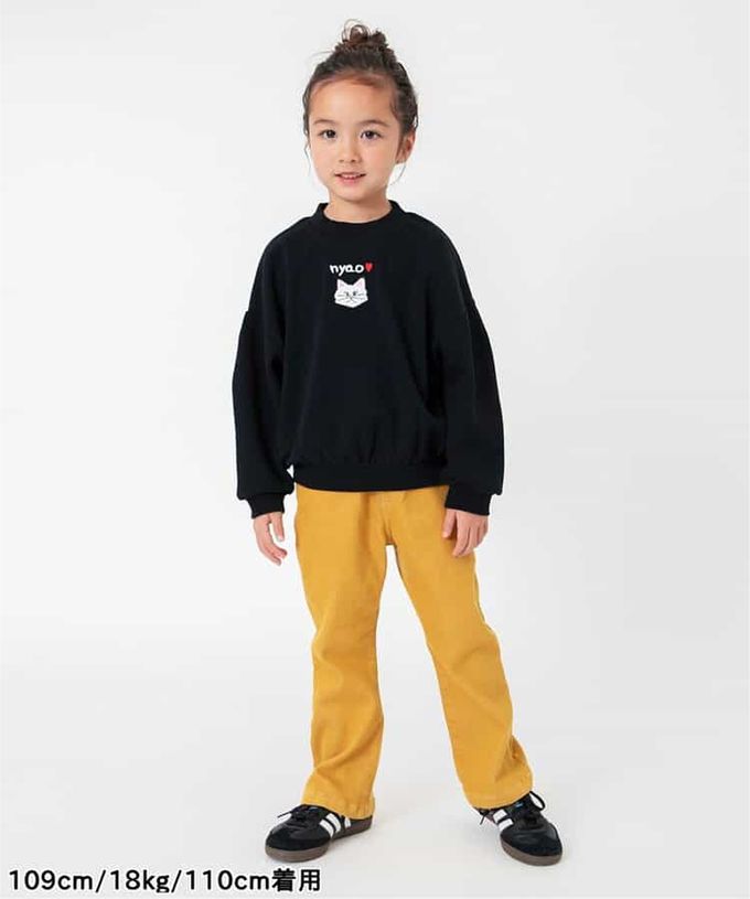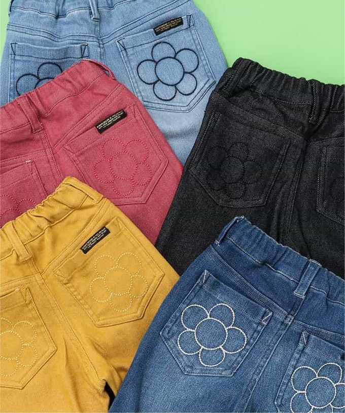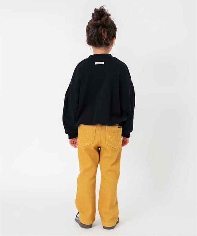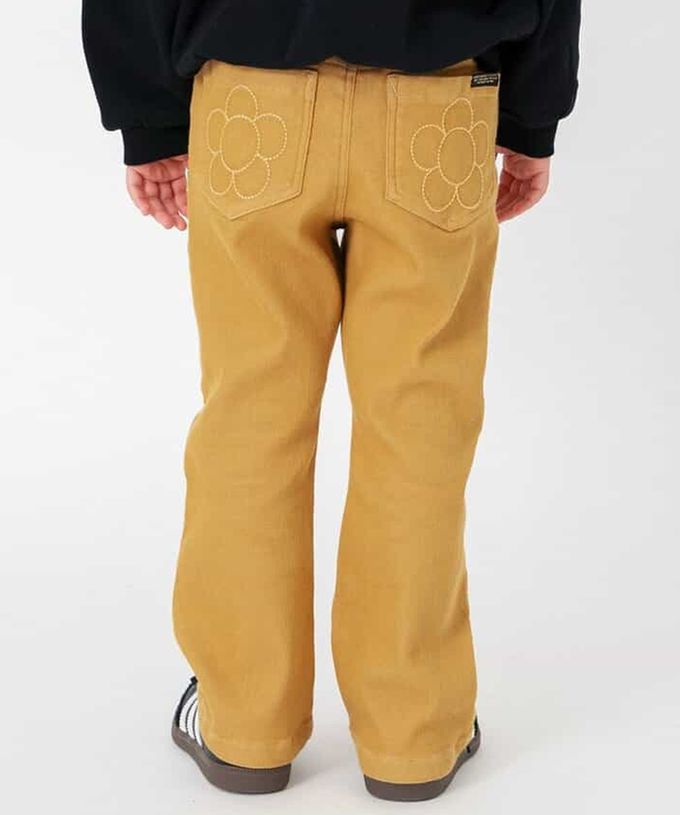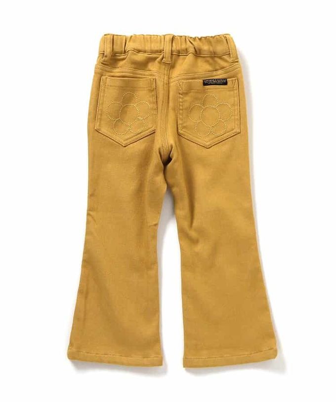 日本 BREEZE - 花朵口袋內刷毛美型小喇叭長褲-芥末黃