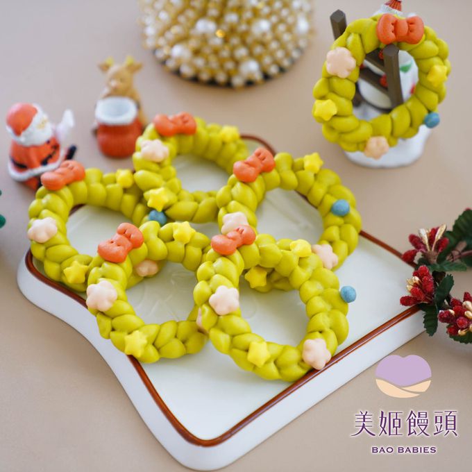 聖誕花環鮮乳造型饅頭,採用SQF-Level 3最高等級驗證麵粉,百分百鮮乳製作不包內餡,香甜可口奶香濃郁,營養又健康。
