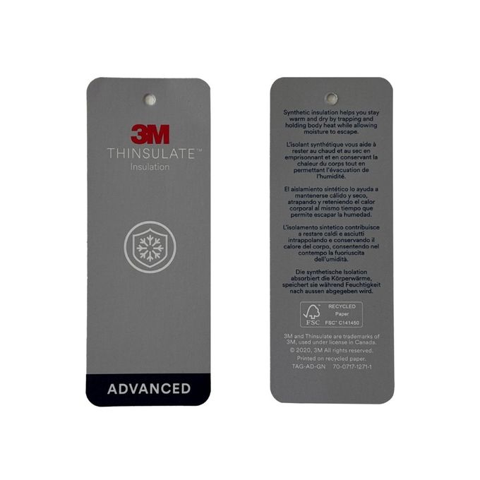 保持乾燥溫暖: 與天然羽絨不同,Thinsulate™ 纖維是親水性低的材質。即使在潮濕環境或出汗後,它仍能保持大部分的保暖性能,並能快速乾燥。