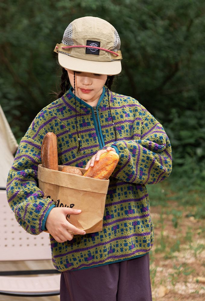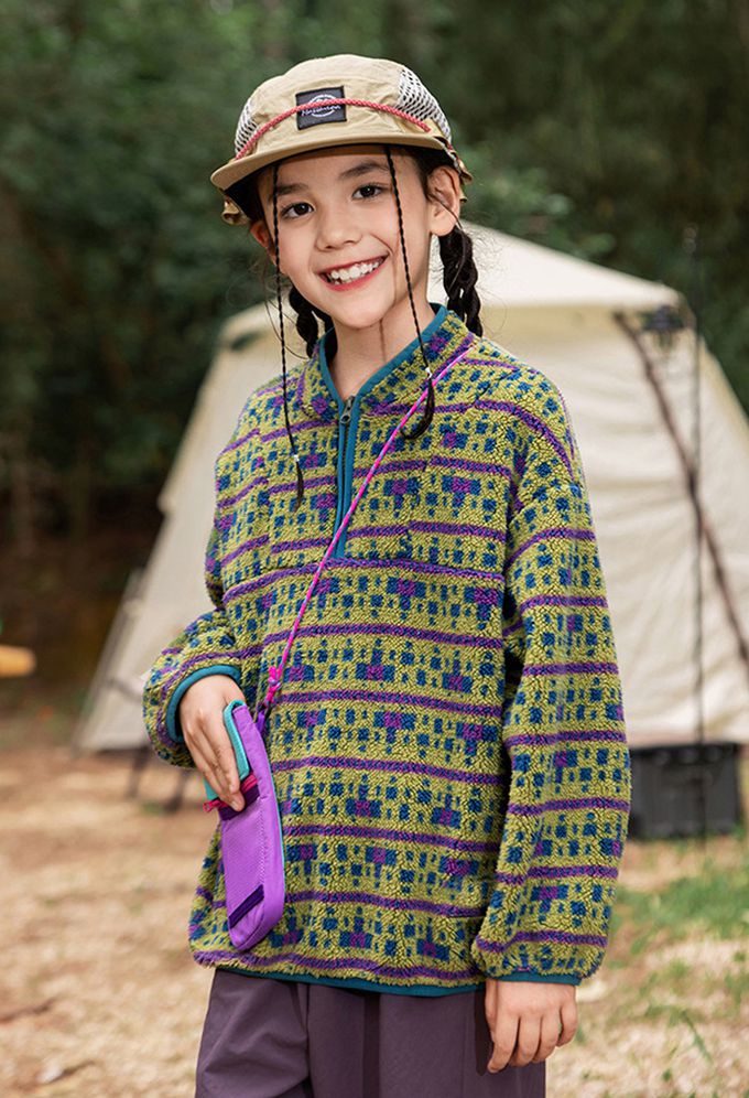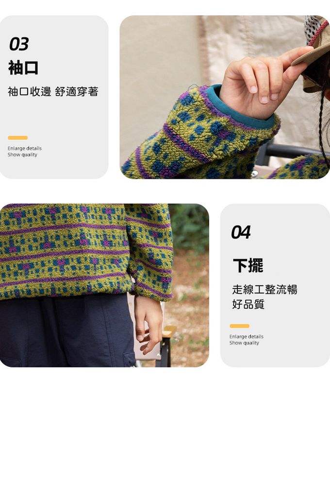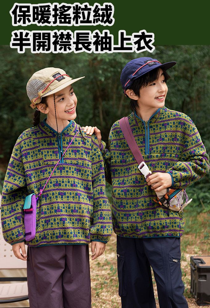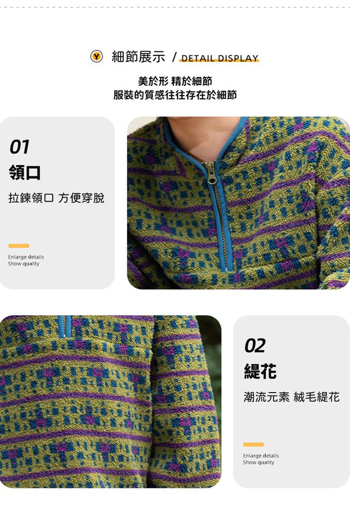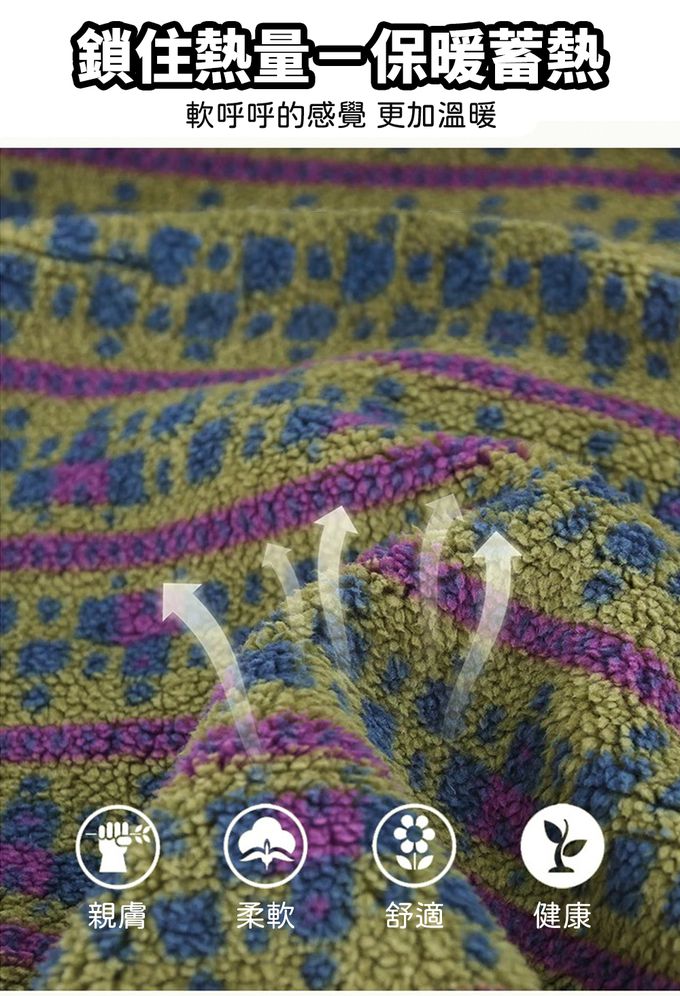 保暖搖粒絨半開襟長袖上衣-復古緹花-綠色