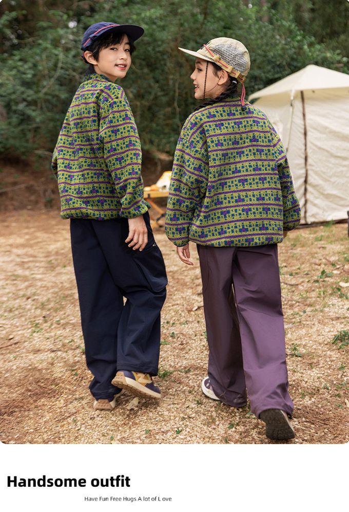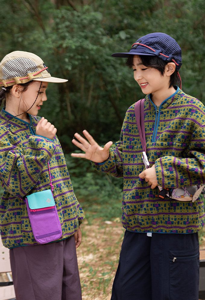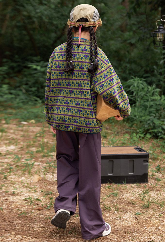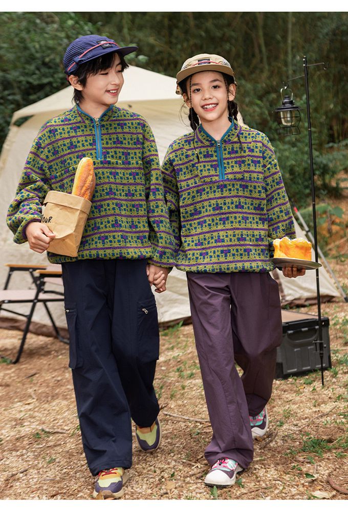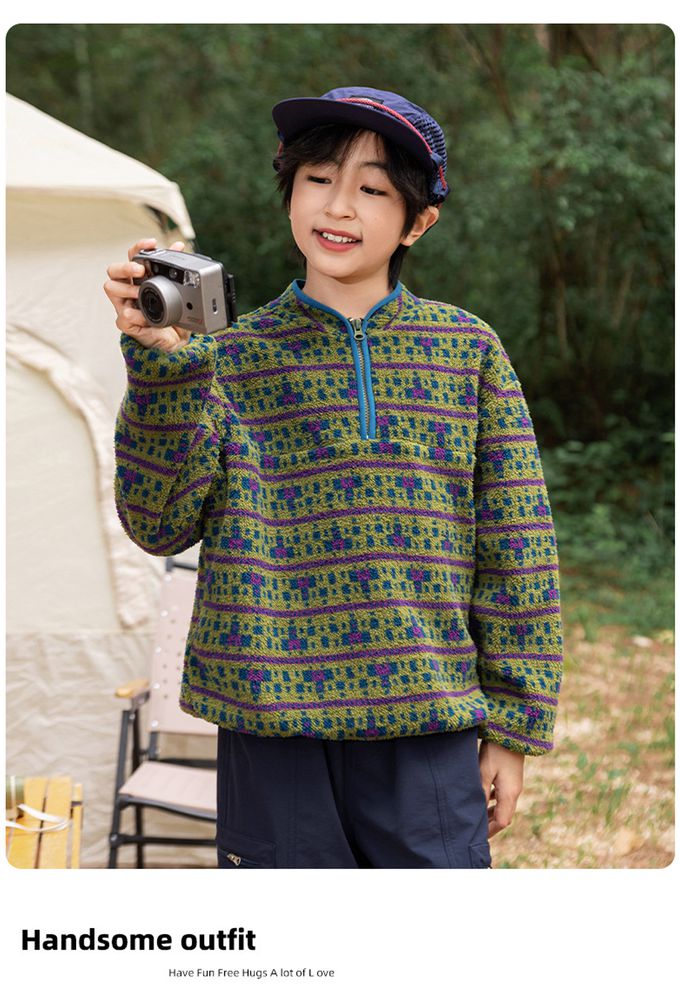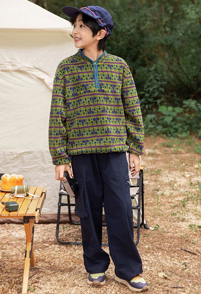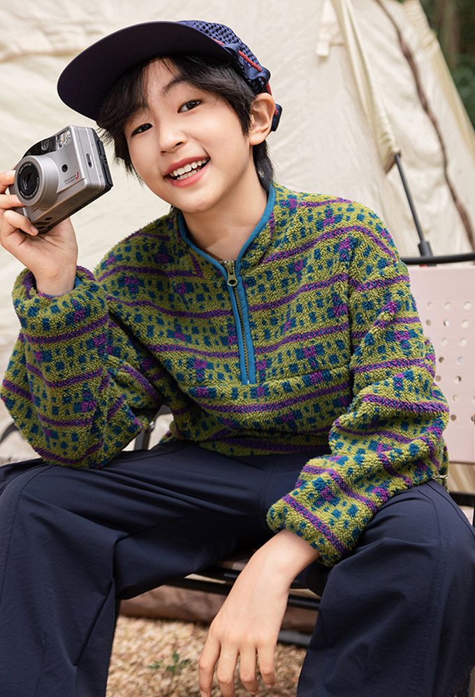 保暖搖粒絨半開襟長袖上衣-復古緹花-綠色
